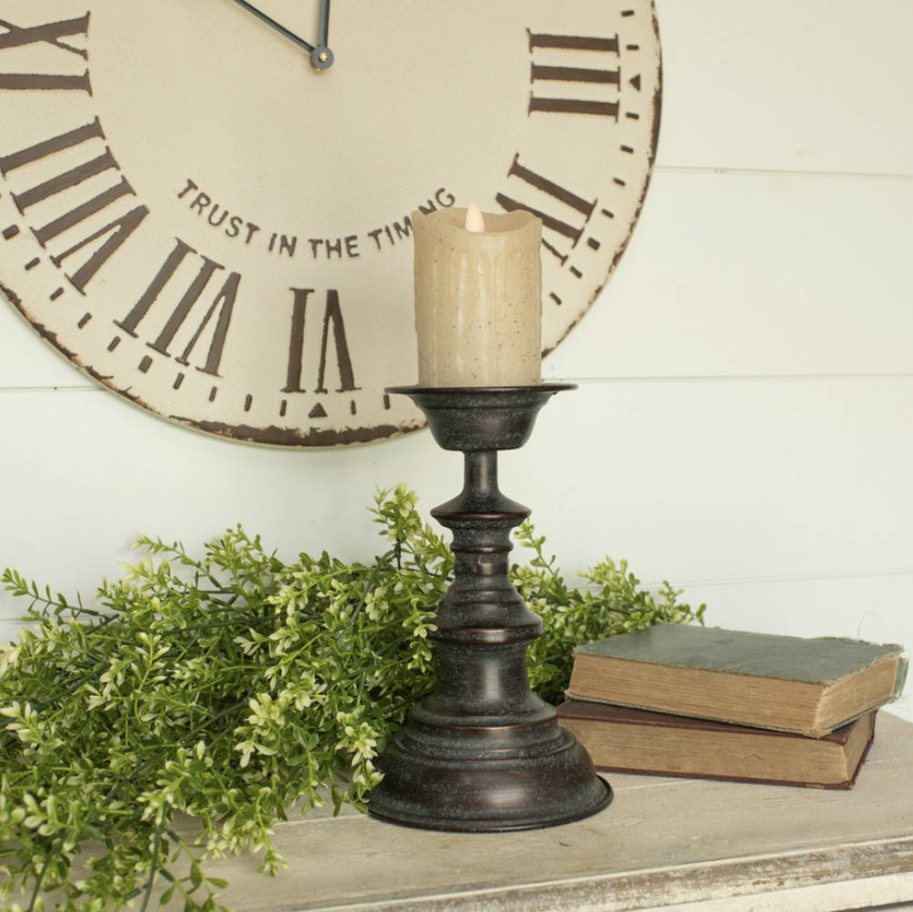10″ Antique Rubbed Metal Candlestick