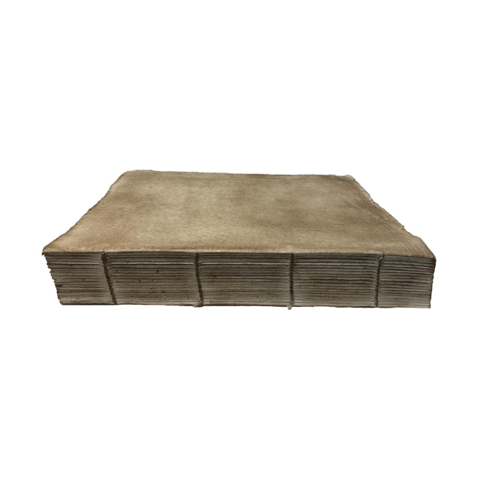 17" tall. Heavy weight mulberry paper folded into signatures and coptic stitched. Antiqued finish.