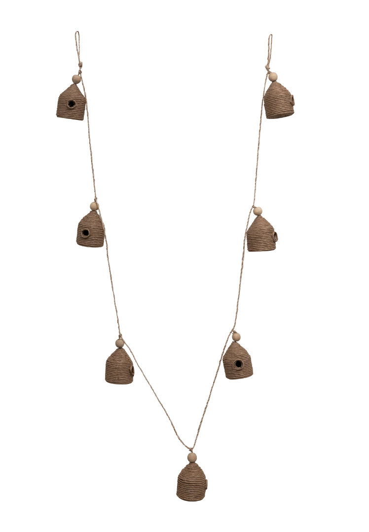 72″ Handmade Jute Wrapped Paper Mache Bee Skep Garland