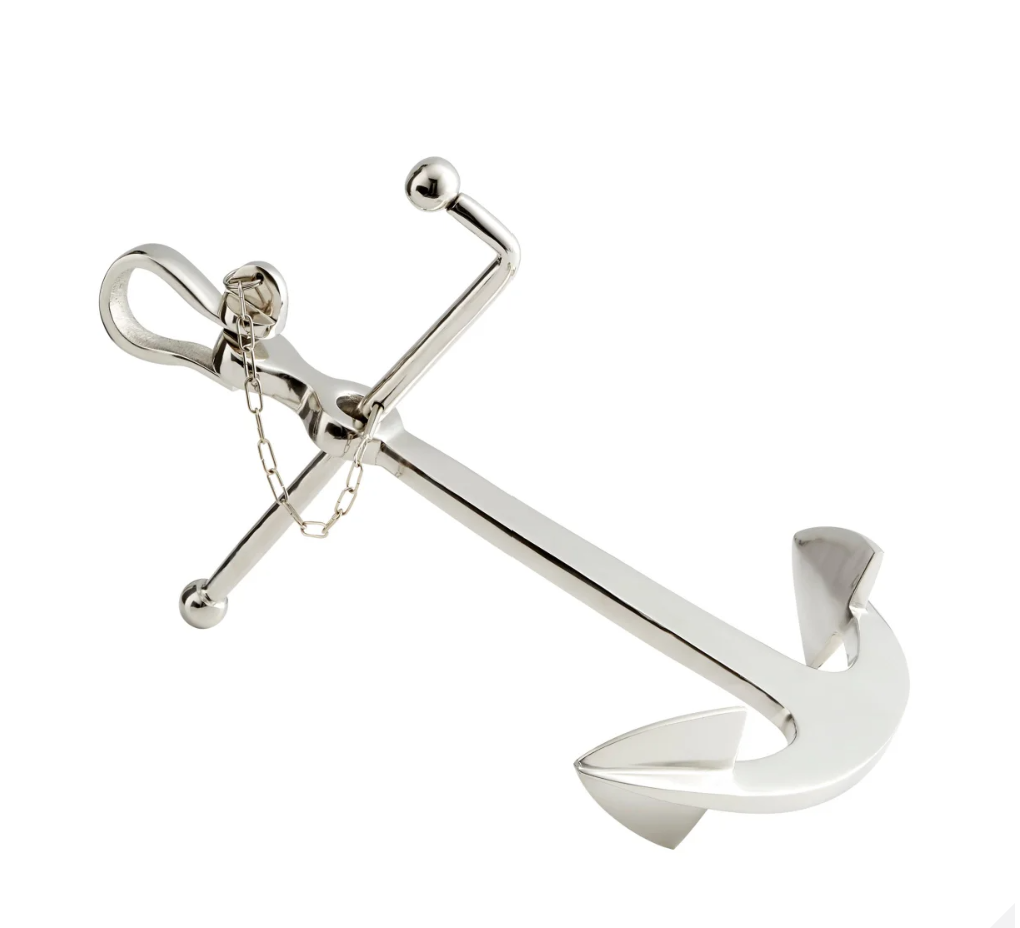 Bring a nautical passion to your desk or bookshelf with this metal anchor sculpture. In a cool, contemporary nickel finish, the gleaming piece depicts a classic ship`s anchor in an elevated, refined aesthetic.