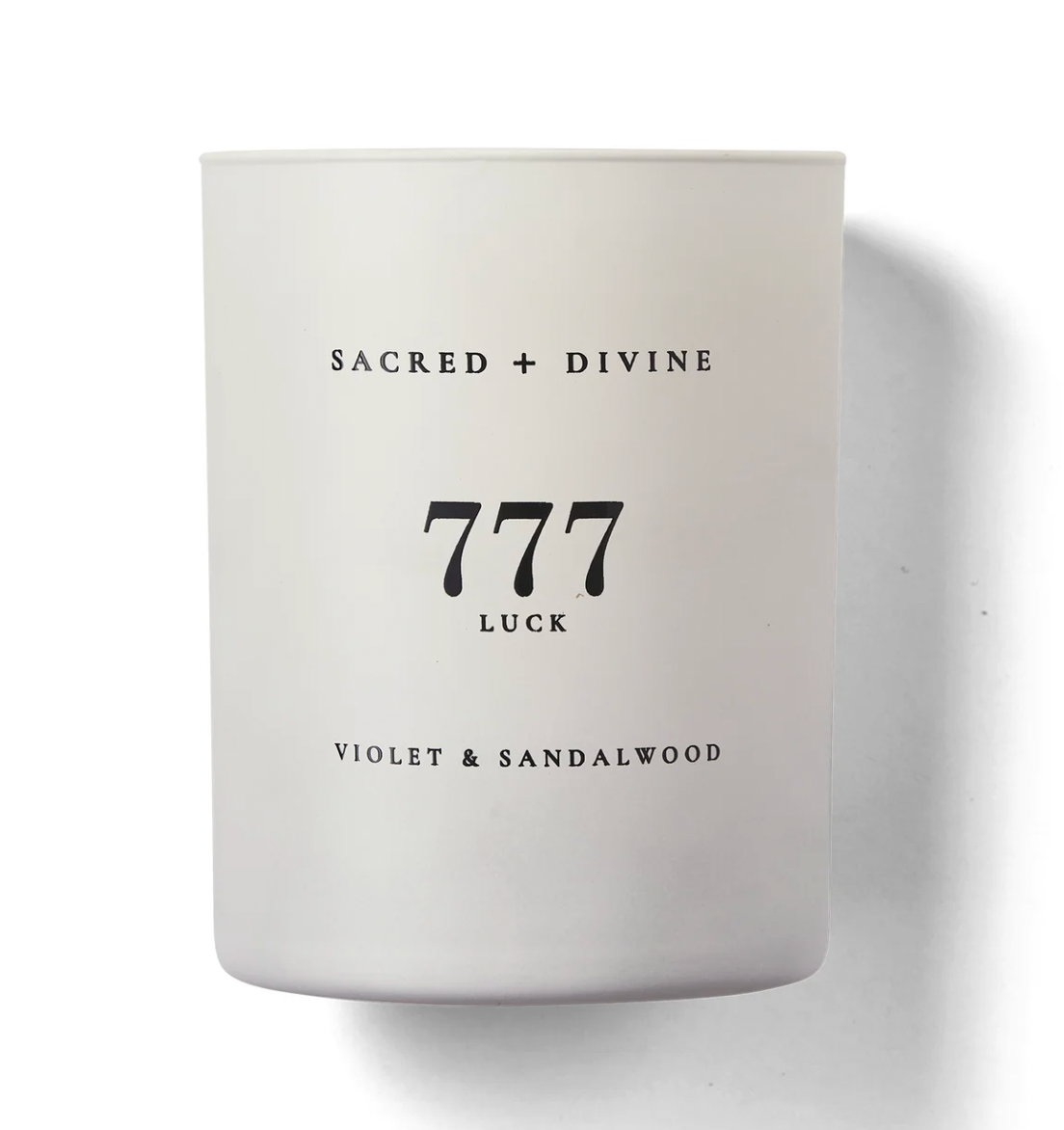 The 777 candle is joy, abundance and comfort. The rich woodiness of Sandalwood marries with the powdery, romantic notes of Violet to curate a captivating aroma. Light the 777 candle and feel lucky energy surround you.