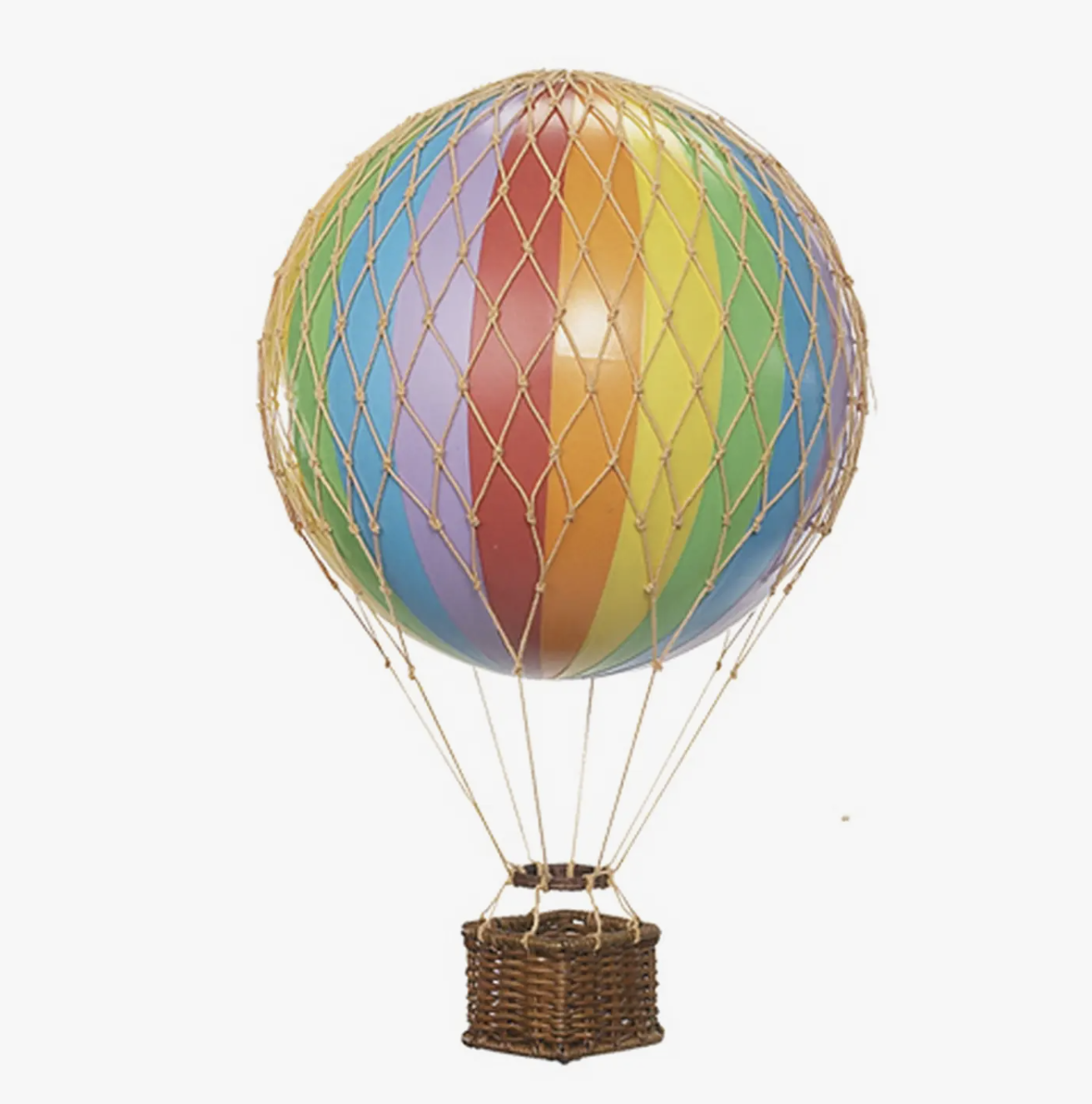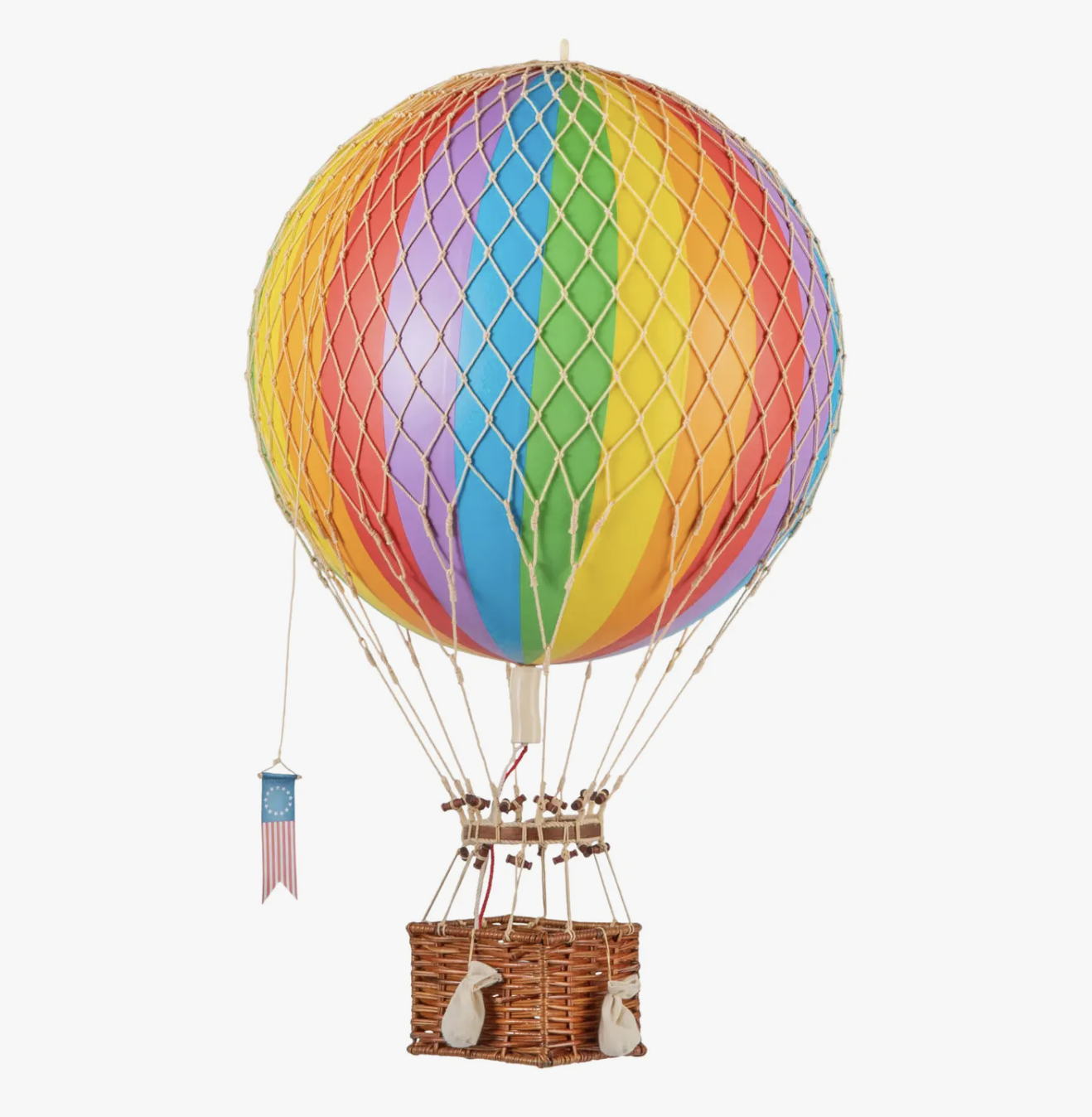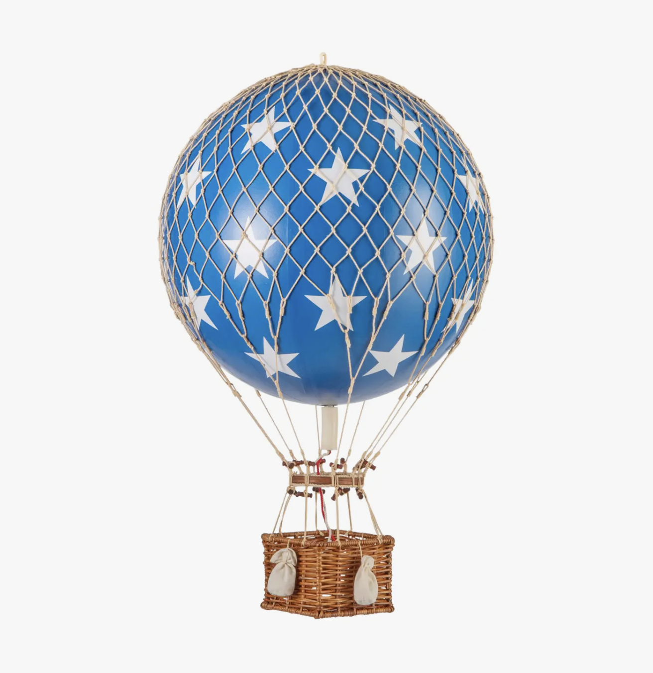 Each balloon is handmade and takes more then 6 months to manufacture by artisan craftsman. the webbing knots are tied by hand, the rattan basket is woven by hand and the royal aero feature miniature sandbags to help take you away. perfect for any room decor.