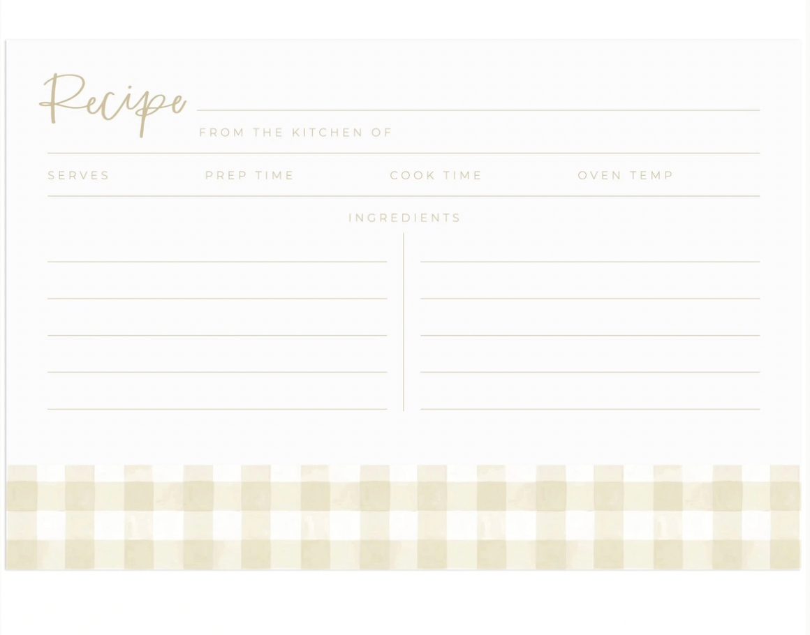 Beige Gingham Recipe Cards