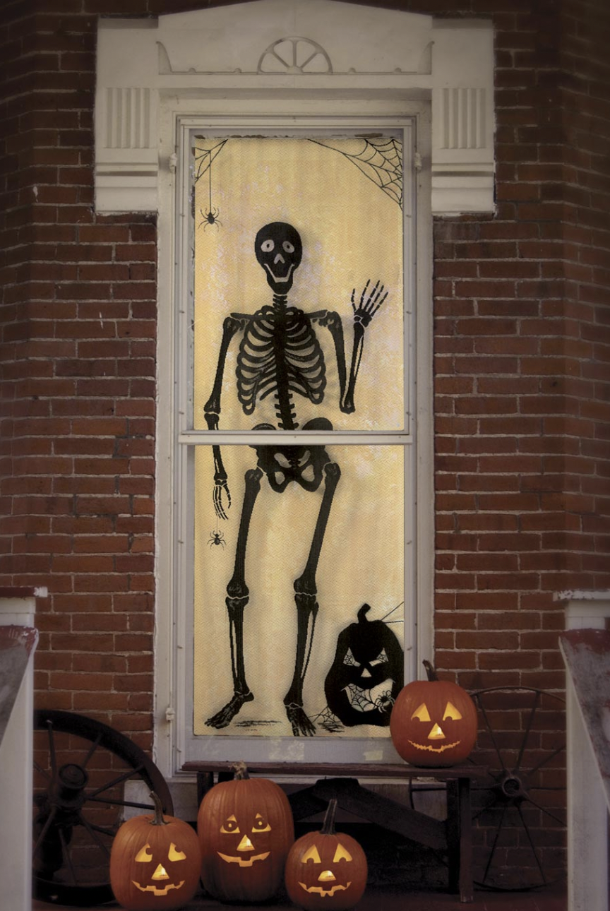 Give a ghoulish greeting to guests with a life-size skeleton silhouetted in a window or door. Suitable for use both indoors and outdoors, and with Spider Web door swag.