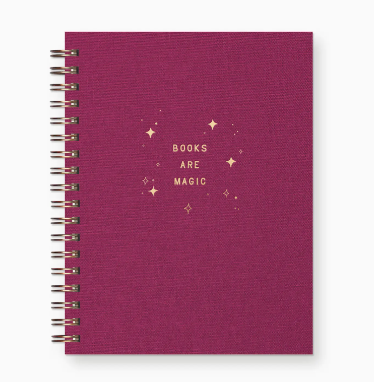Wherever you want to go, books can take you there. That's why they're full of magic. Use our Book Log Journal to document your literary adventures. Rate, review, write your favorite quotes, and keep track of your TBR list, all in one enchanted journal. Reading knows no bounds. Additional Details: -6.5" x 5.25" -60 Pages -Gold Wire-O Binding -Locally Made In Lawrence, Kansas