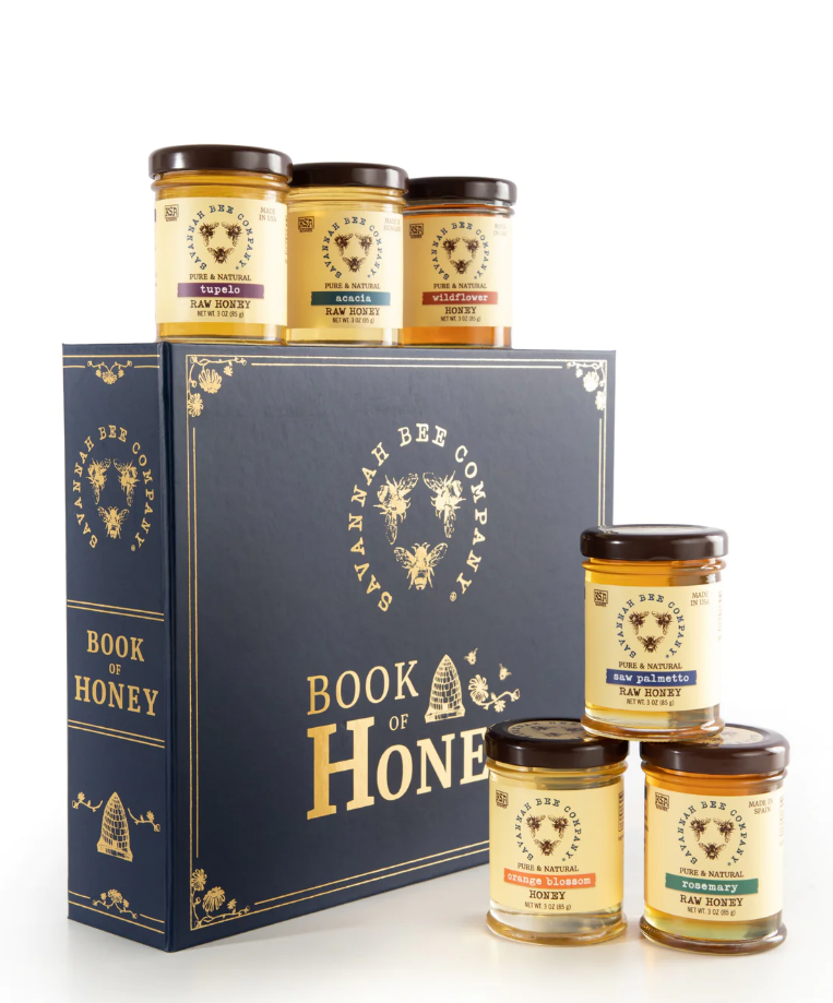Here’s the story: Six 3-oz. jars of our most popular honeys—Tupelo, Lavender, Saw Palmetto, Wildflower, Rosemary and Orange Blossom—come together as a nifty sampler packaged in a beautiful binding. It’s such a “novel” idea that it was selected as one of Oprah’s Favorite Things in 2021!