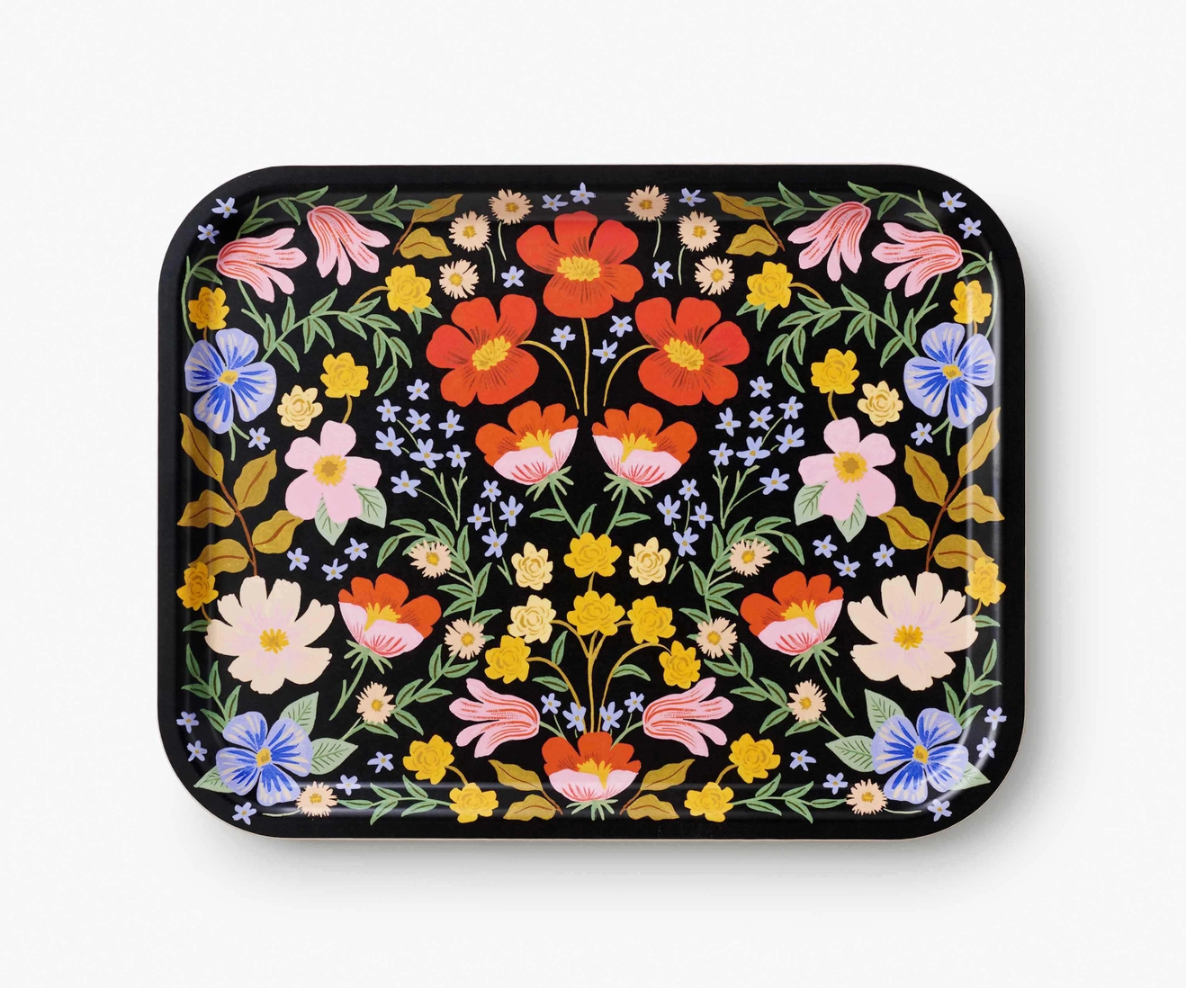 Our bent ply trays are as versatile as they are beautiful, handmade in Sweden from lightweight, FSC-certified birch. The laminated finish makes them perfect for entertaining inside and out, or adding a pop of color to your decor. This rectangle tray features our Bramble florals, and its medium size makes it a great addition to a vanity or bar cart.