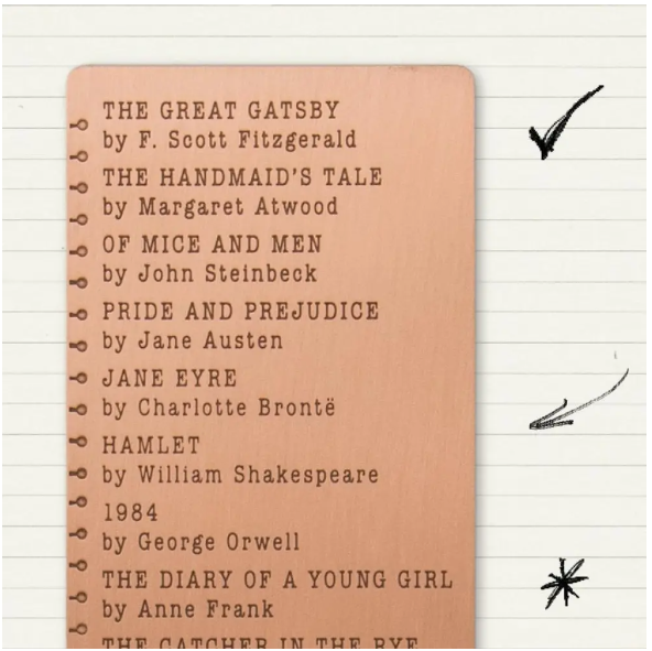 A lifetime’s reading etched into a copper bookmark. Everyone loves a list! And this one is a lovingly curated selection of classic works, etched into a pleasingly heavy piece of copper. How many have you read?