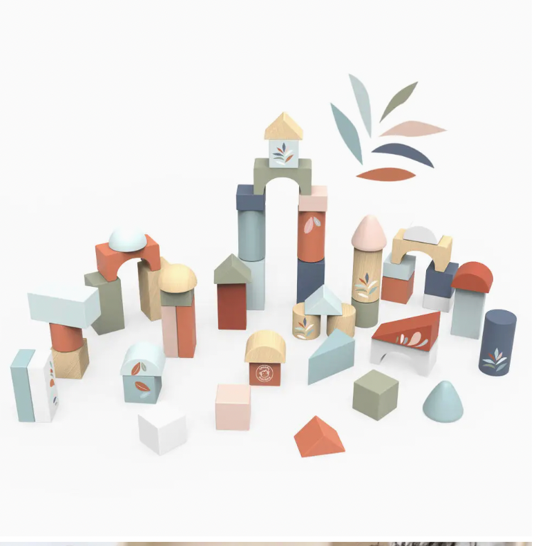 50 Colorful FSC Certified Wood from our certified supplier en building blocks for toddlers, remains indispensable for apprenticeship hand-eye coordination. Different shapes and printed with pretty leaves encouraging your little one to freely use his imagination to build while stimulating sensory development. The blocks come in a pretty round bucket a handle and with a shape sorter lid which makes it more fun to collect them. This toy is made with FSC-certified FSC Certified Wood from our certified supplier via our FSC-Certified manufacturing partner and non-toxic, child-safe paints, Speedy Monkey toys meet ASTM F963, California Prop 65, and international safety standards, letting children play safely and imaginatively. Specifications Color: multicolor Recommended Age: 12+ months Material: FSC Certified Wood from our certified supplier Size (inches): L: 7 x W: 7 x H: 7 Weight (lbs): 2,57 Care instructions: Clean only with a damp cloth. Do not use detergents.