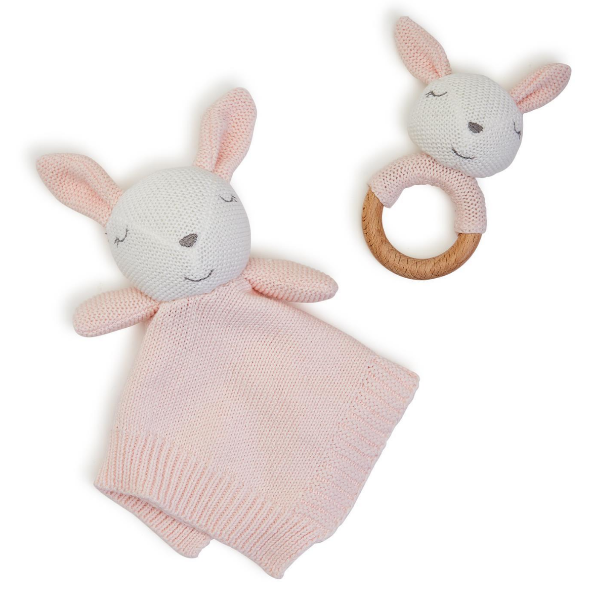 Knitted Baby Bunny Snuggle and rattle set