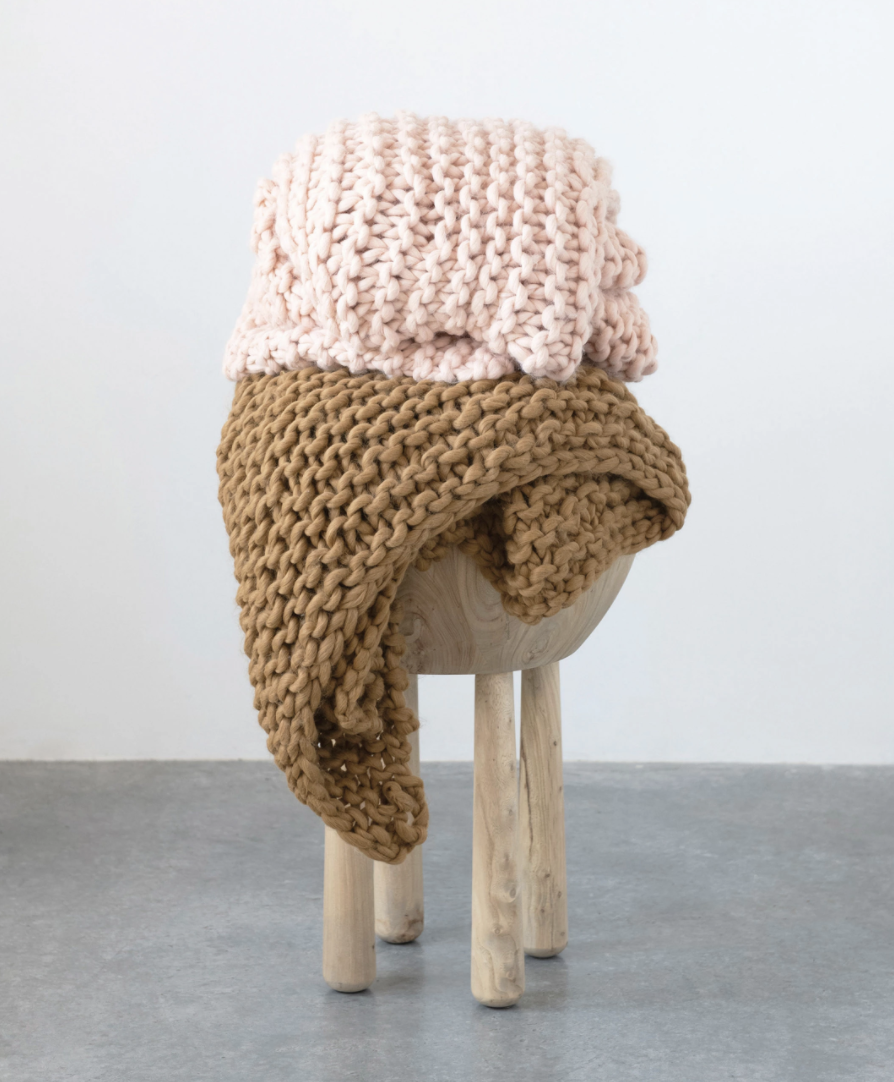 60″L x 50″W Crocheted Fabric Throw, Caramel Color