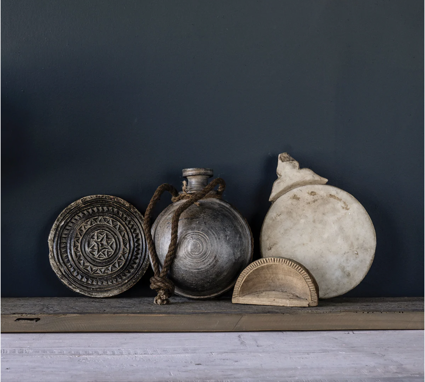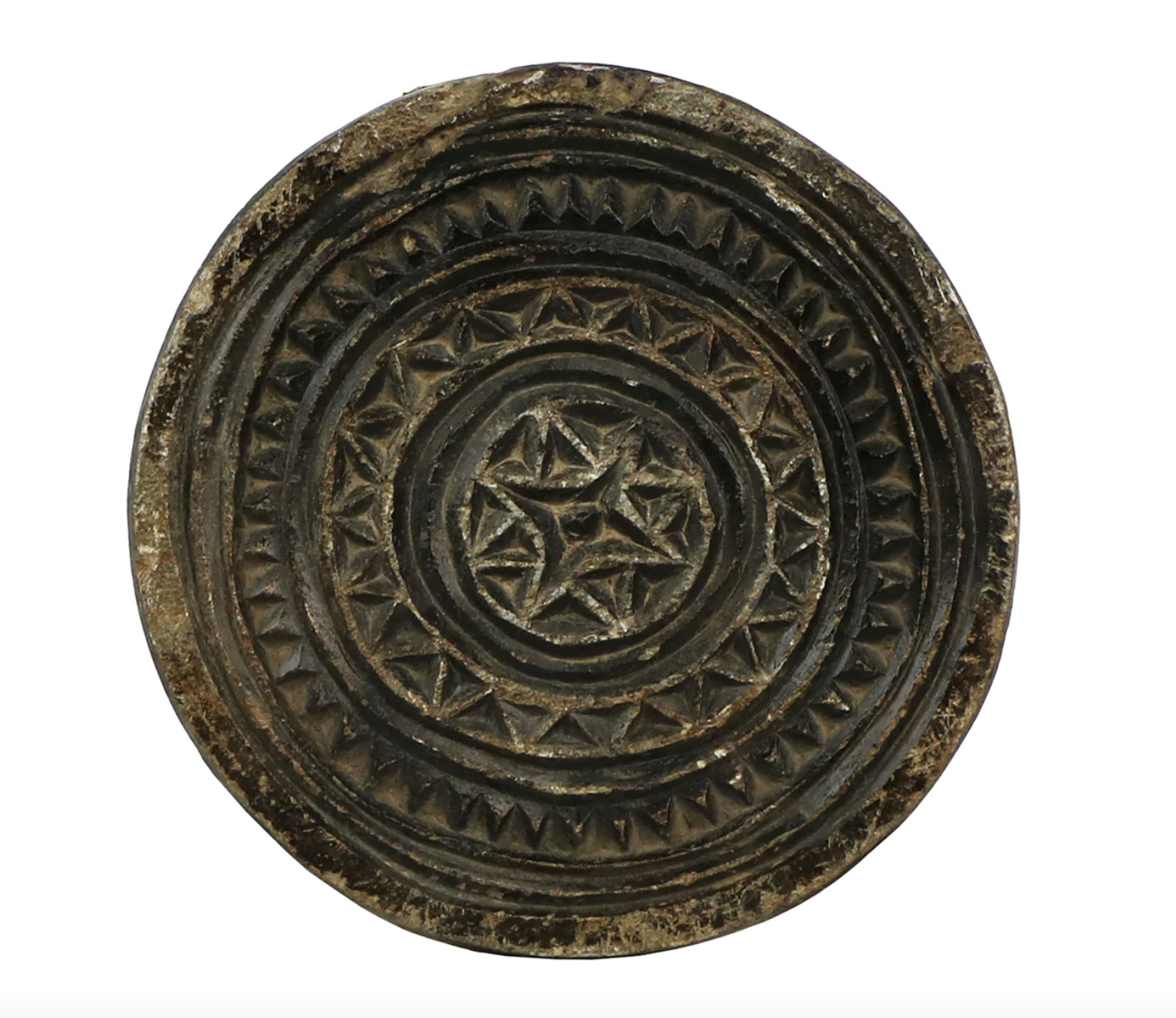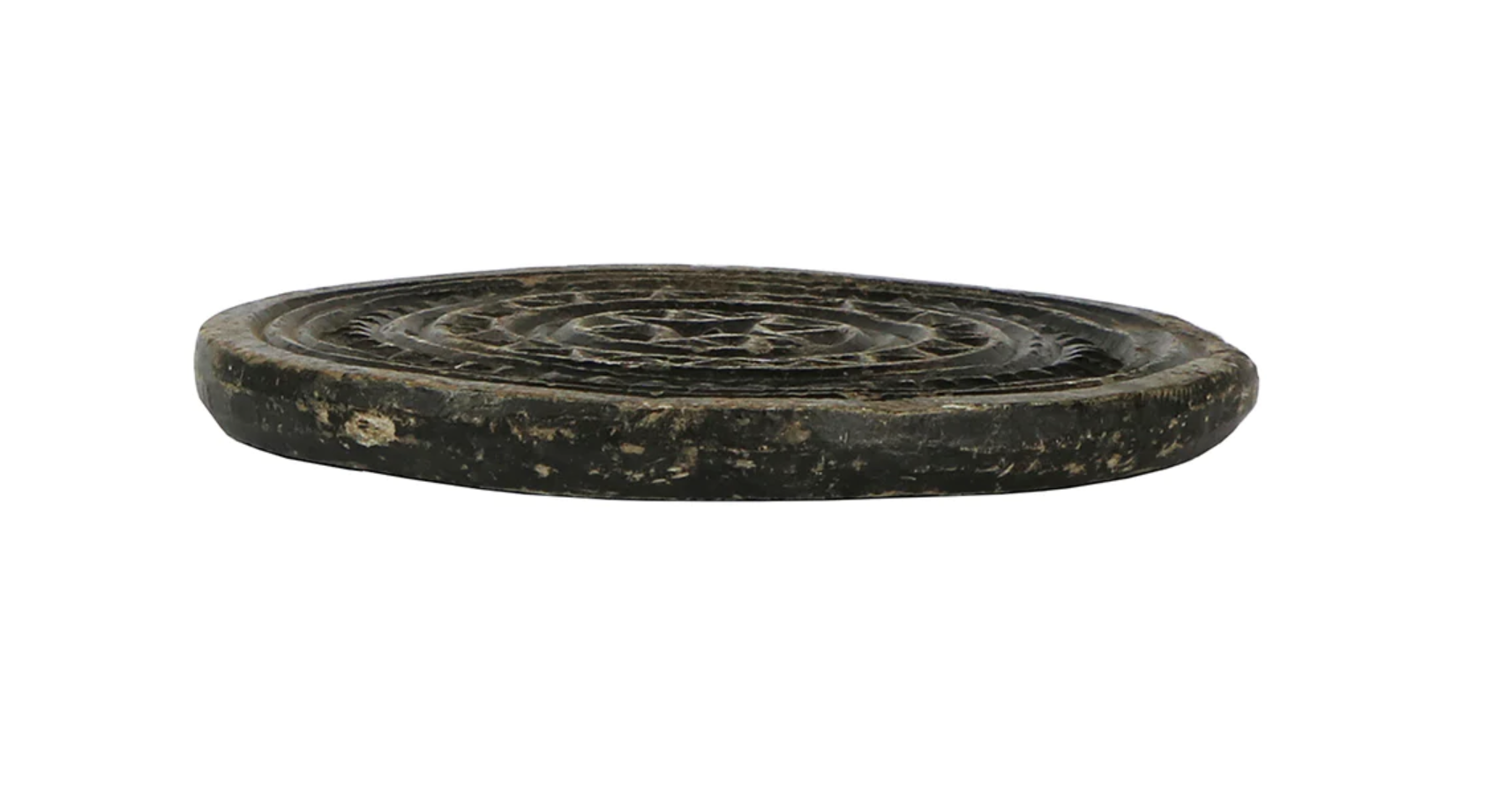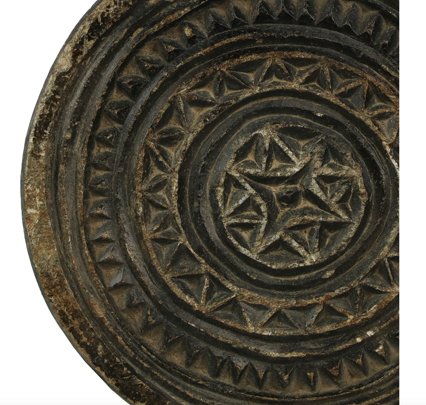 The quotidian accouterments of one culture or generation can inspire another. These Carved Stone Biscuit Molds are crafted in India from vintage pieces and newly carved with artistic designs. Each design is traditional and gives the Carved Stone Biscuit Mold an antique, global appeal. Size and condition vary.