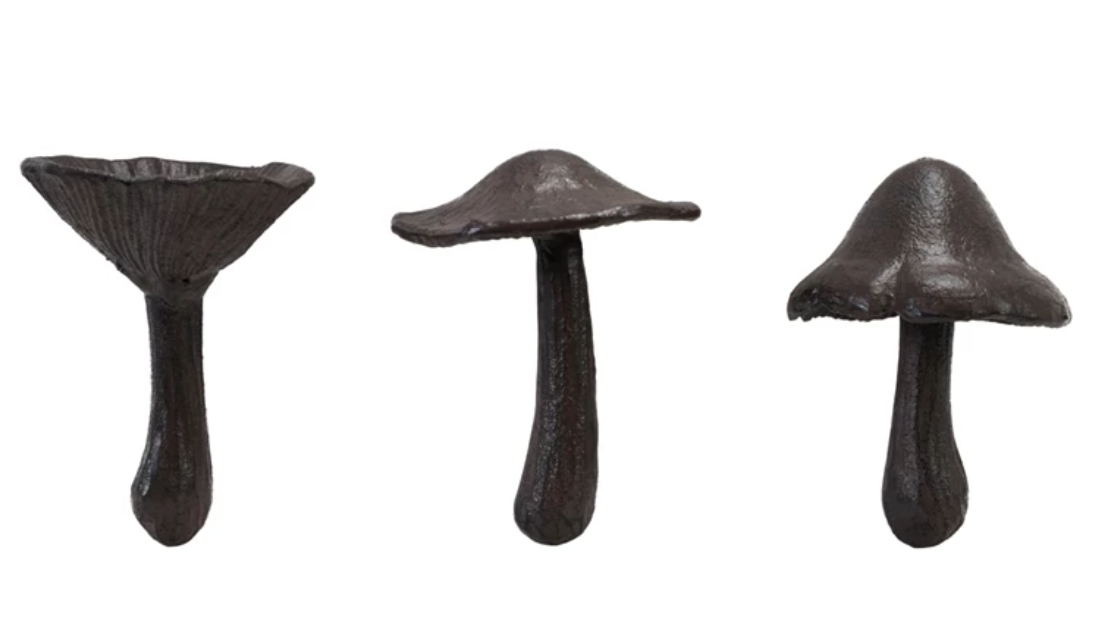 Catalog Name: Approximately 4"H Cast Iron Mushroom, 3 Styles