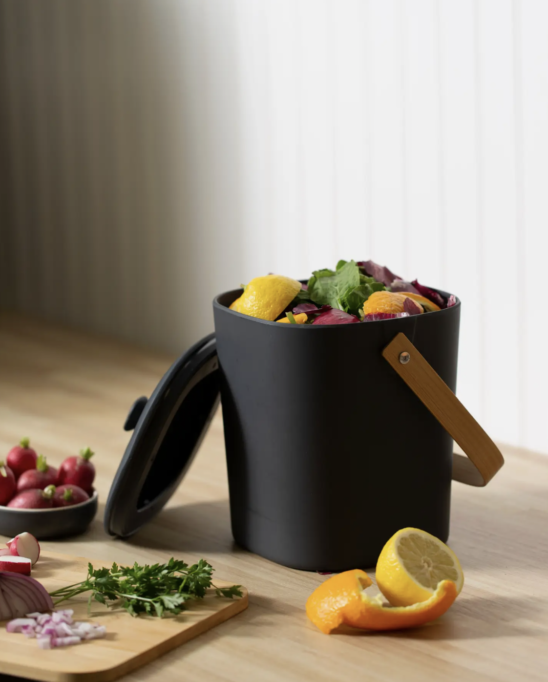 Let’s send less to the landfill! Convert your own organic waste into compost to enrich the soil in your backyard. The Bamboozle composter is a sleek counter-top bin that allows you to transport your organic waste to either an outdoor compost pile, or to a local community compost facility. The filtered lid helps to keep out any unwanted smells, and the bamboo handle allows for easy carrying