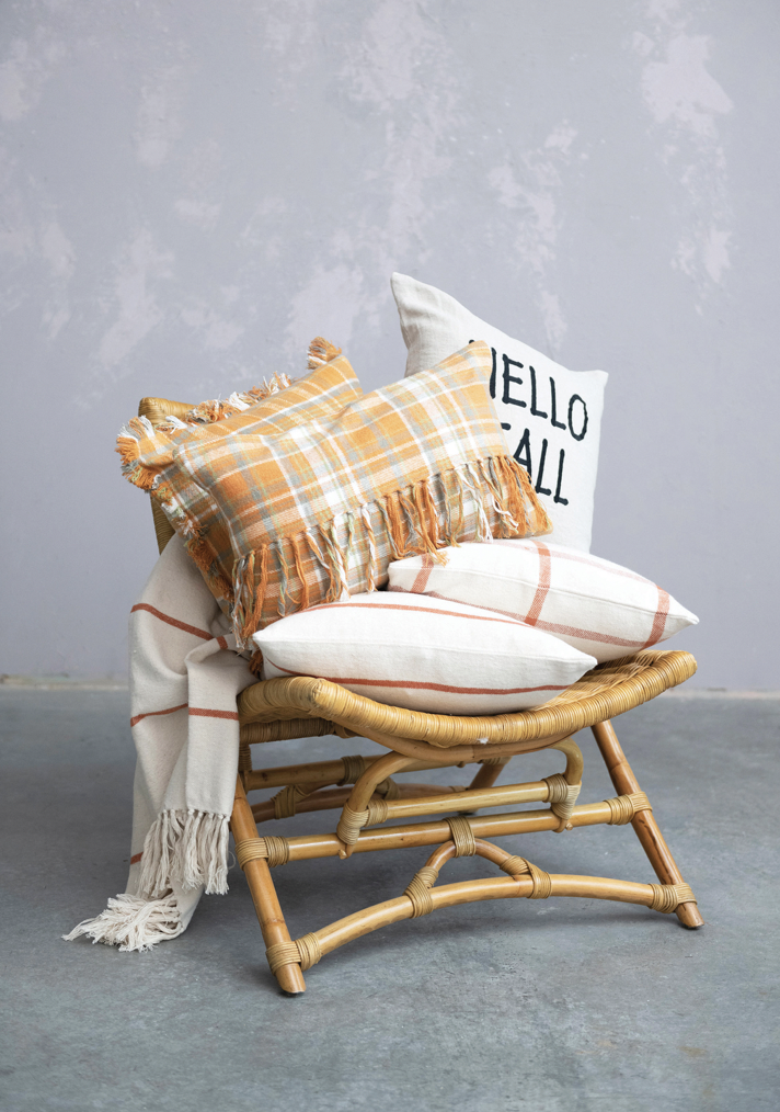These cozy, fall-themed pillows have two styles of patterns available. A fantastic, rustic piece that you can add to any room. The cover is removable and can be washed separately. Both the cover and pillow insert are made of cotton.