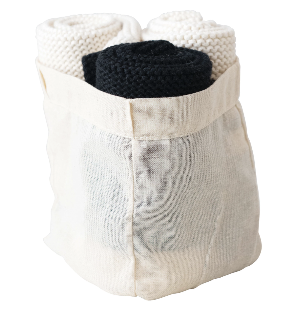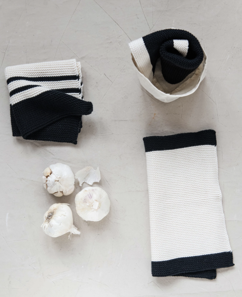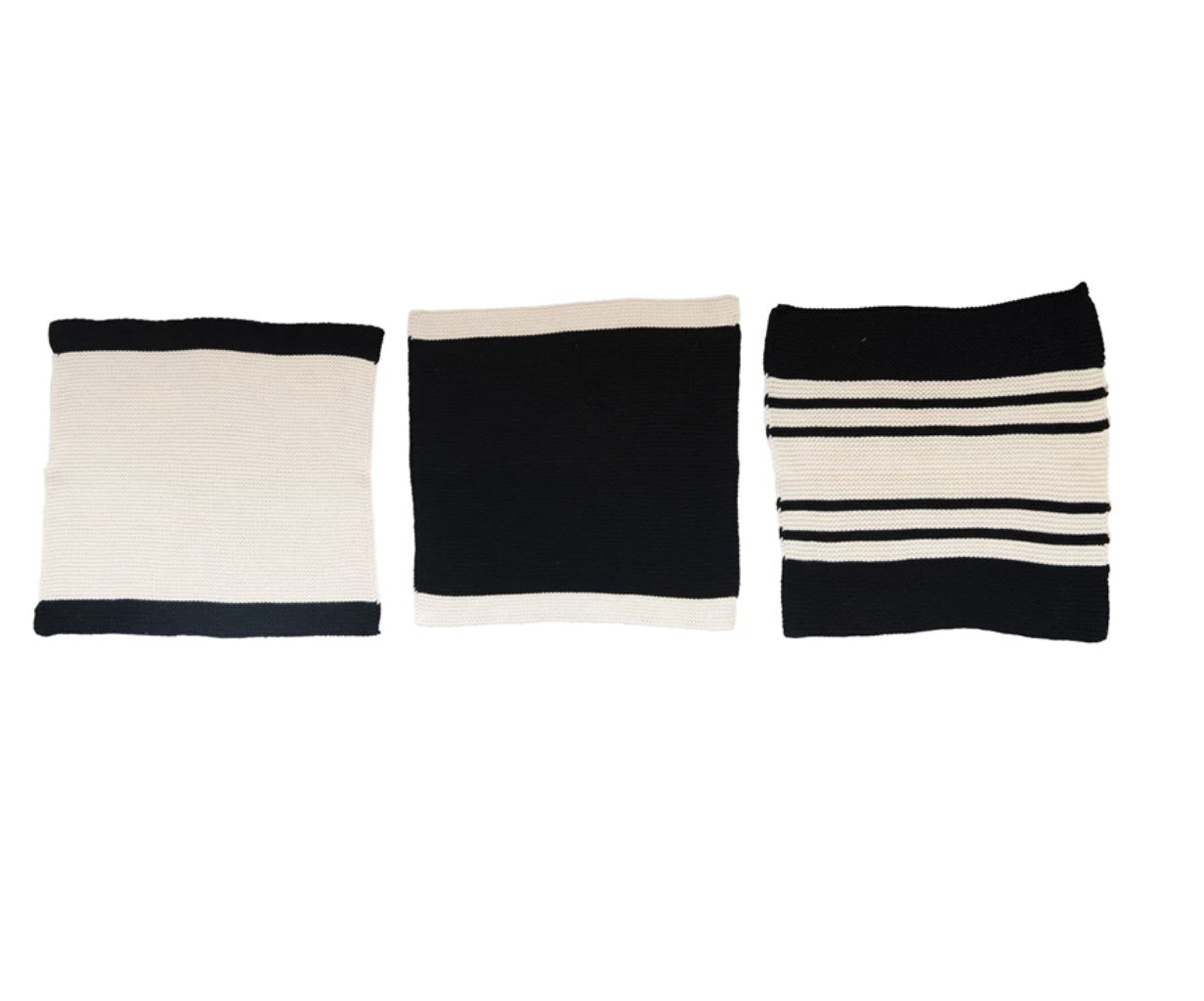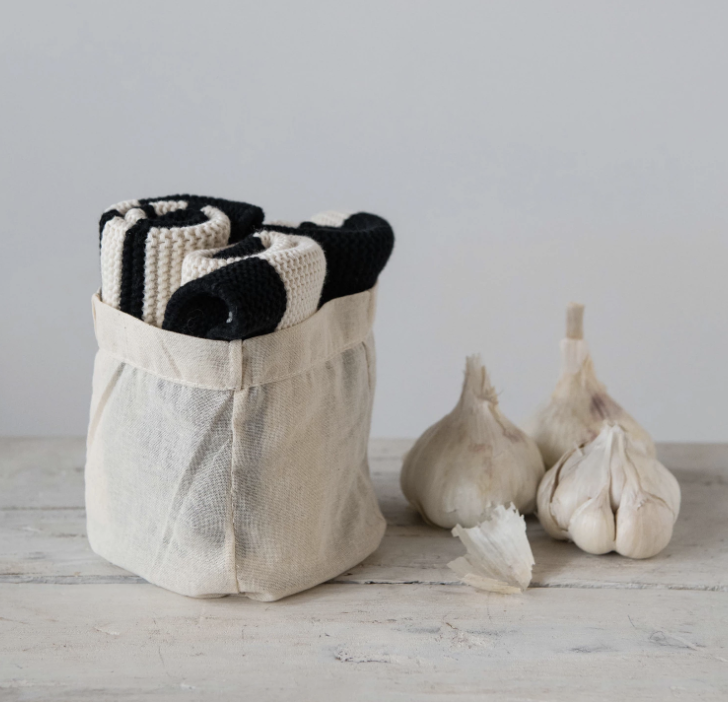 11-1/2″ Square Cotton Knit Dish Cloths, Black & Cream Color, Set of 3 in Cotton Bag