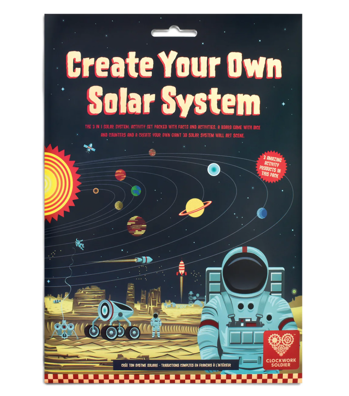 Take a trip into space and learn about planets, comets, satellites, and more with this create your own solar system wall chart, board game and activity kit.