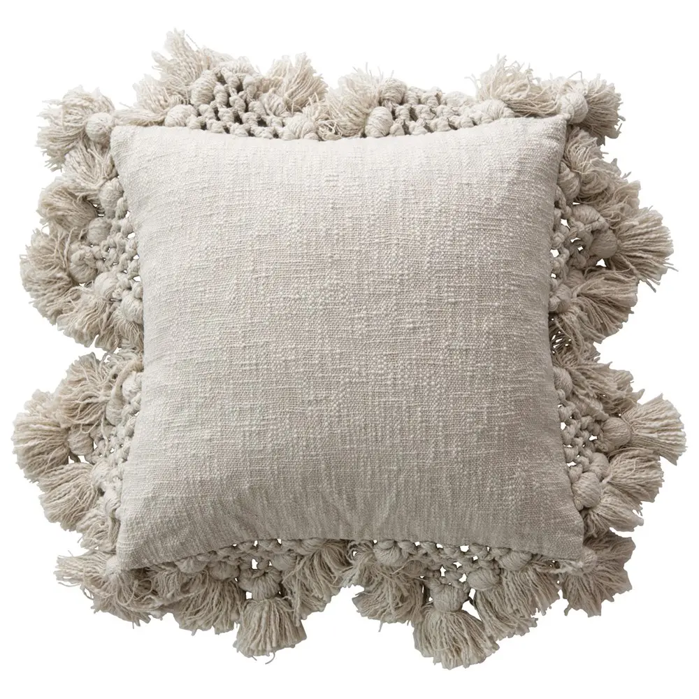 Crochet & Tassel Cotton Slub Pillow