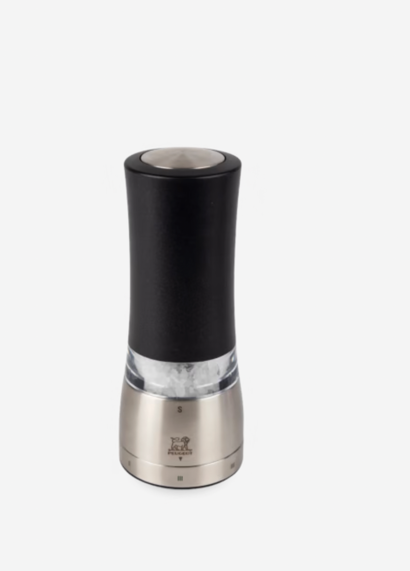 – Compact and ergonomic design- Press the button on the top of the mill to activate it- Transparent reservoir helps you identify the contents quickly- Equipped with a light to help you check how much salt is being ground- Original gift idea- Mécanisme Zirlion, innovation Peugeot- u'Select grind adjustment system with six predefined settings- 5-year product warranty- Salt Mill: for grinding dry salt with a crystal size of less than or equal to 0.24 in / 6 mm. Do not use wet sea salt (even if dried)- Spices INCLUDED