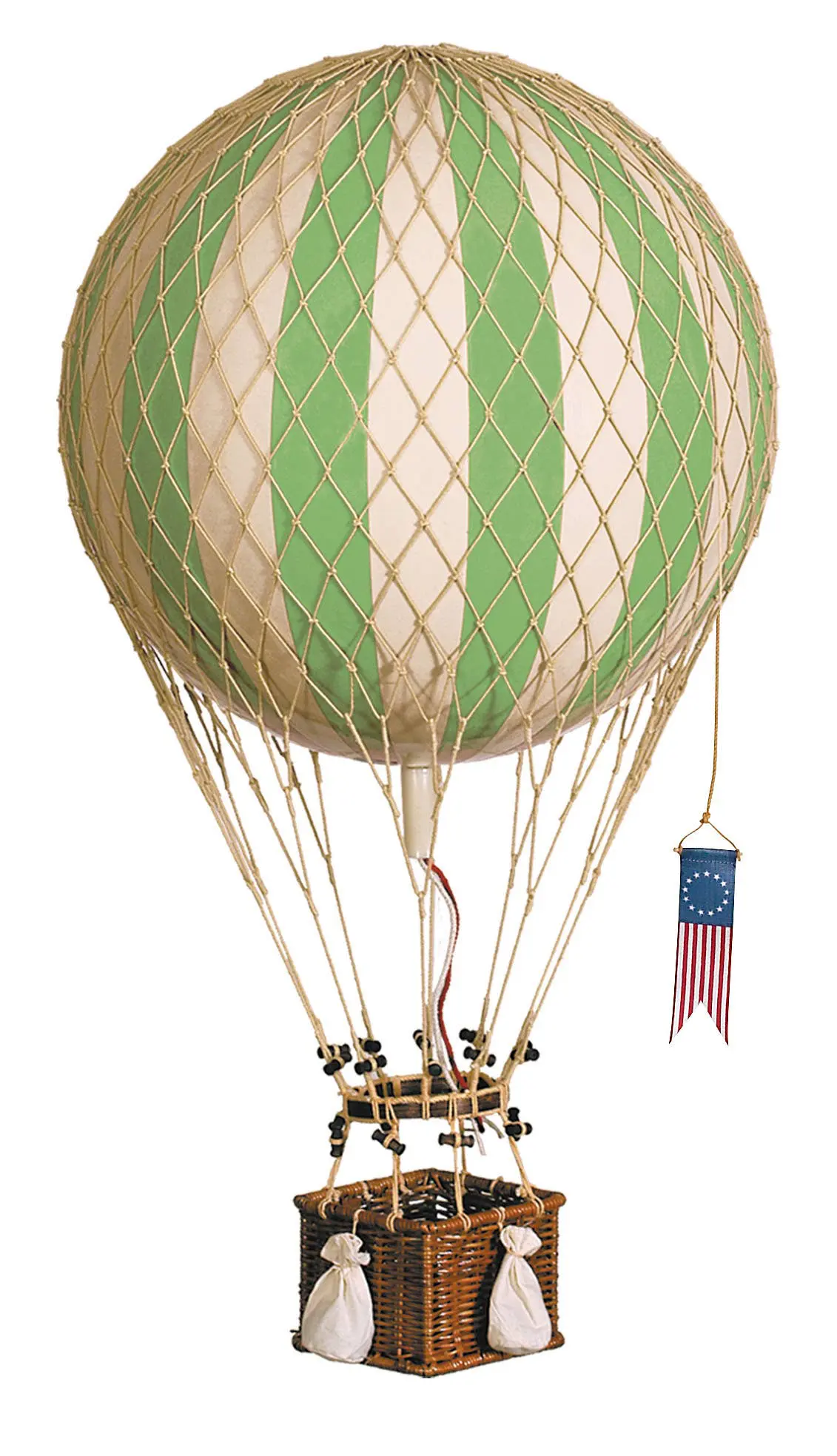 Balloons combine color, décor and science, all-in-one. They’re as fascinating today as they were a century ago. Imagine viewing the earth from above, free as a bird, holding onto a balloon basket. Each balloon takes over 6 months to manufacture and has intricate hand-woven rope webbing and rattan basket with miniature sandbags. A true work of art for any home.