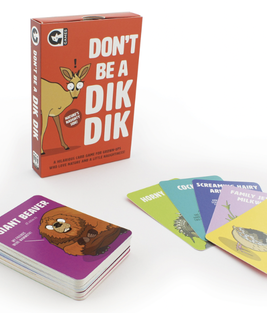 A hilarious card game for grown-ups who love nature and a little naughtiness! Titter at the tufted titmouse, chuckle at the large cockchafer, snigger at the sticky willy, but whatever you do, dont get left holding the Dik Dik!