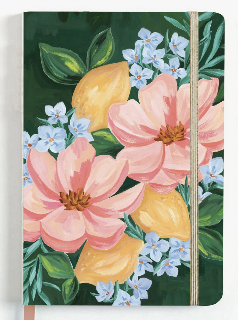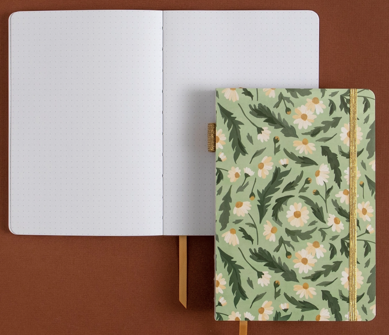 Features | Laminated hardcover, exposed lay flat binding, gold elastic closure, ribbon bookmark Interior | 160 dot grid pages, 160 gsm paper Size | 5.5″ x 8″ x 7/8″ thick