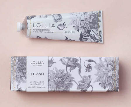 Decadent Shea Butter Handcreme leaves skin nourished and radiant, while lingering notes of opulent White Amber & Mirabelle captivate the senses.