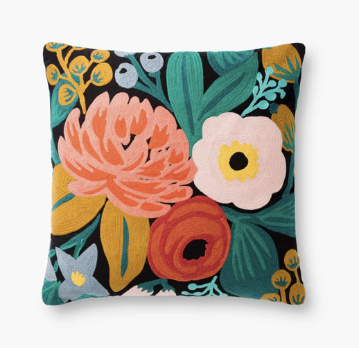Oversized florals and textured crewel embroidery give our Vintage Blossom pillows a graphic, modern feel. Part of our Rifle Paper Co. × Loloi collaboration.