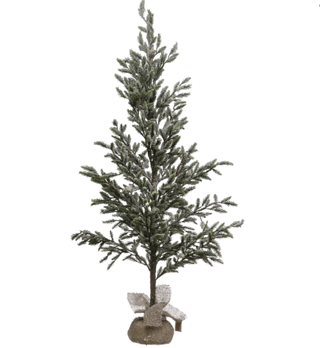 27-1/2" Round x 60"H Faux Pine Tree w/ Burlap Wrapped Base, Ice Finish