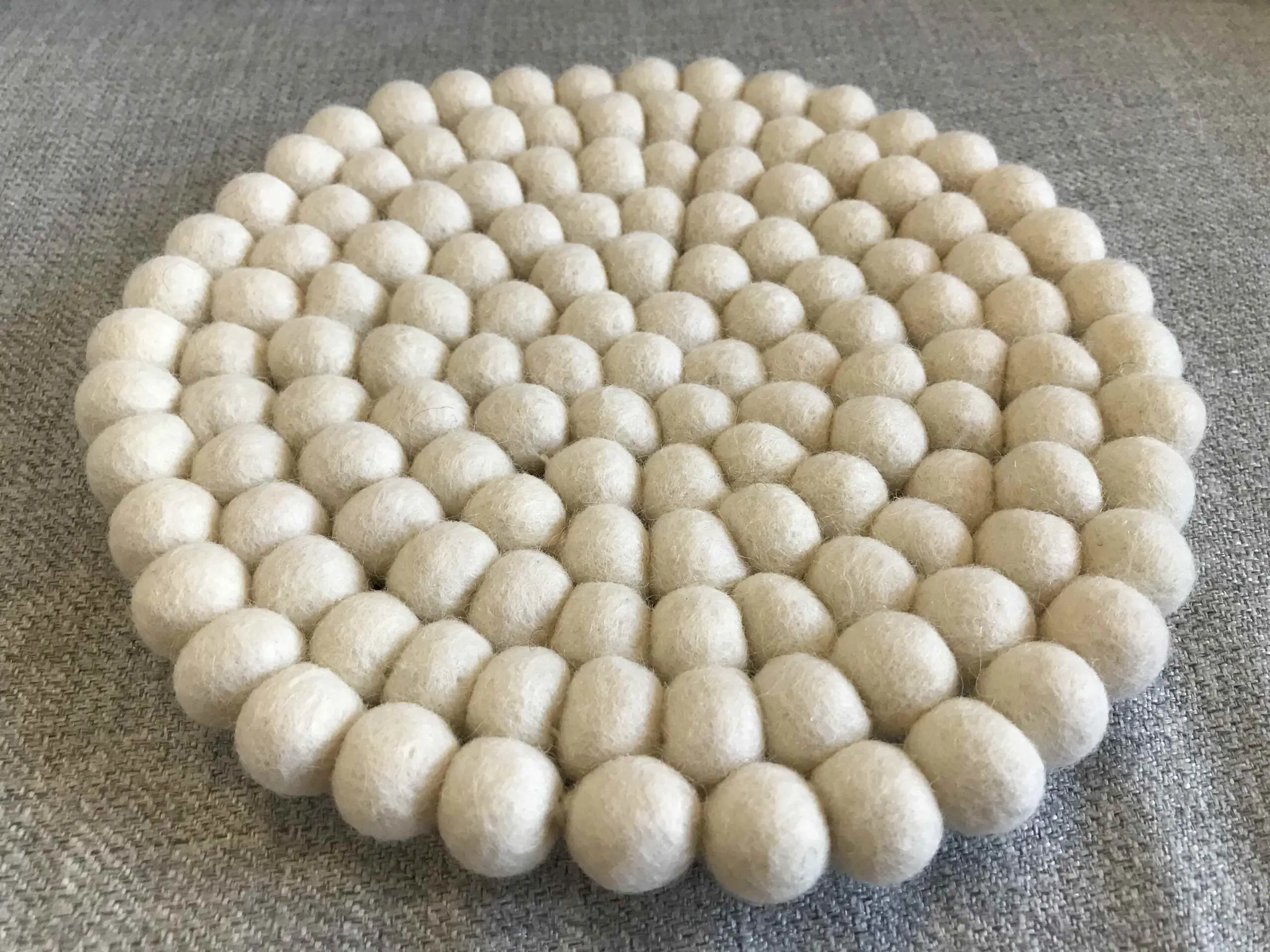 These felted ball trivets are handcrafted in Nepal using 100% wool. Make a statement with these unique pieces in your kitchen!