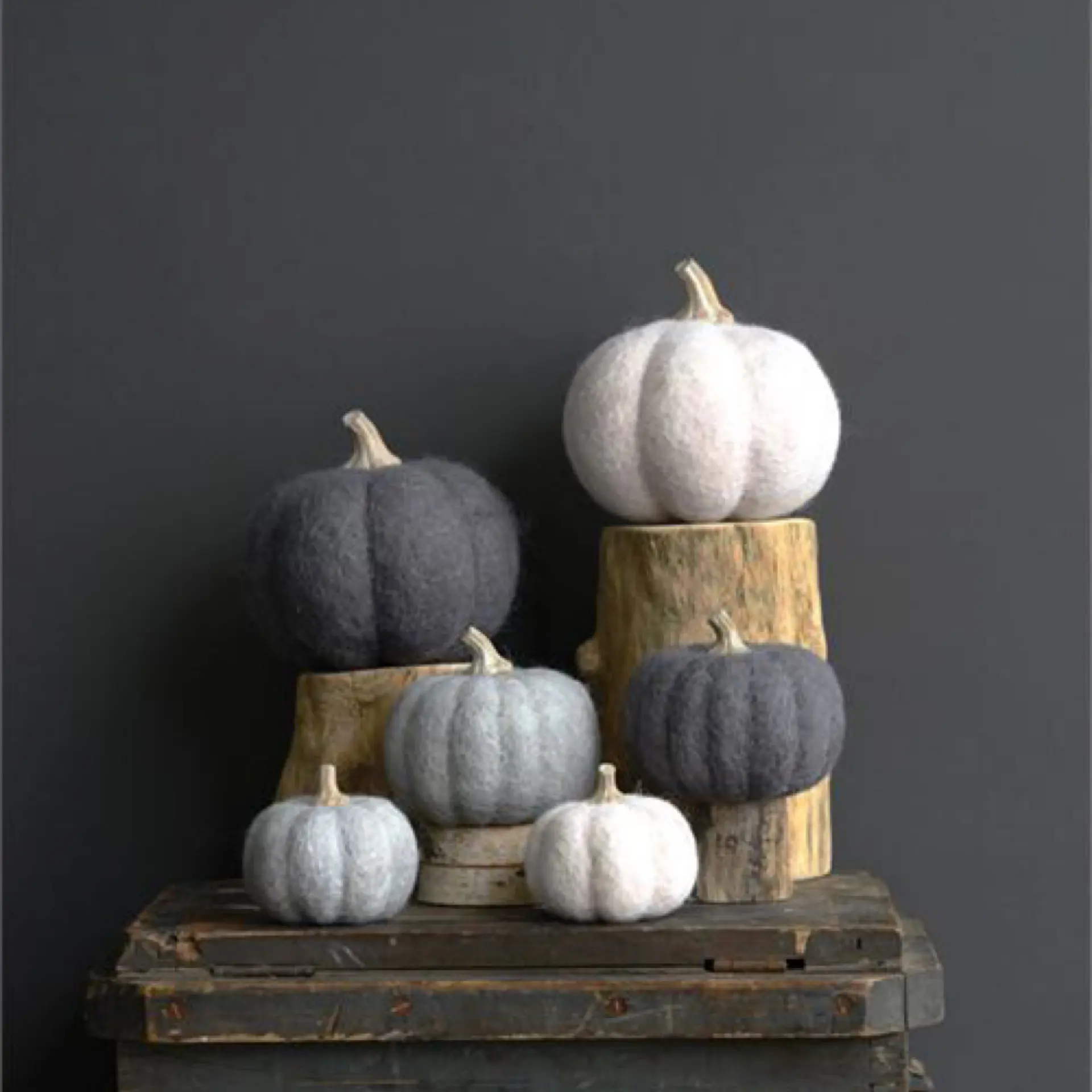 Felted wool pumpkin decor