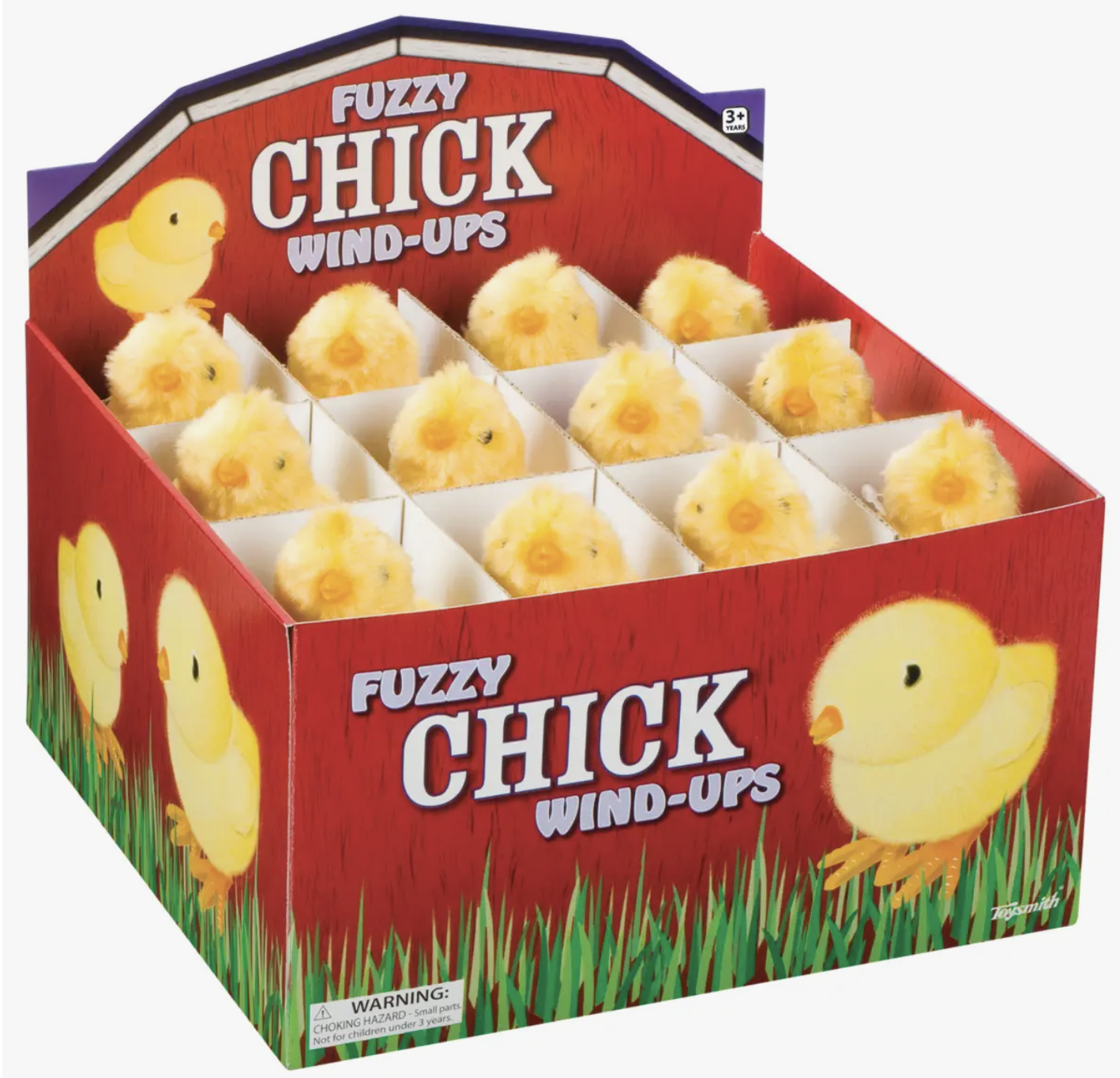 A display of 36 adorable yellow fuzzy chickys! Who could resist? Share with friends or use for party gift bag favors. Great for Easter or year round fun. Each chick is 3 inches tall. Recommend for age 3 years and up.