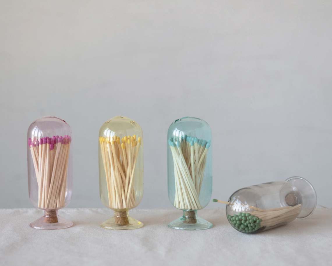2-1/4″ Round x 5-3/4″H Glass Match Holder, 4 Colors