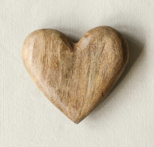 4-1/4″L x 4″W Hand-Carved Mango Wood Heart, Natural