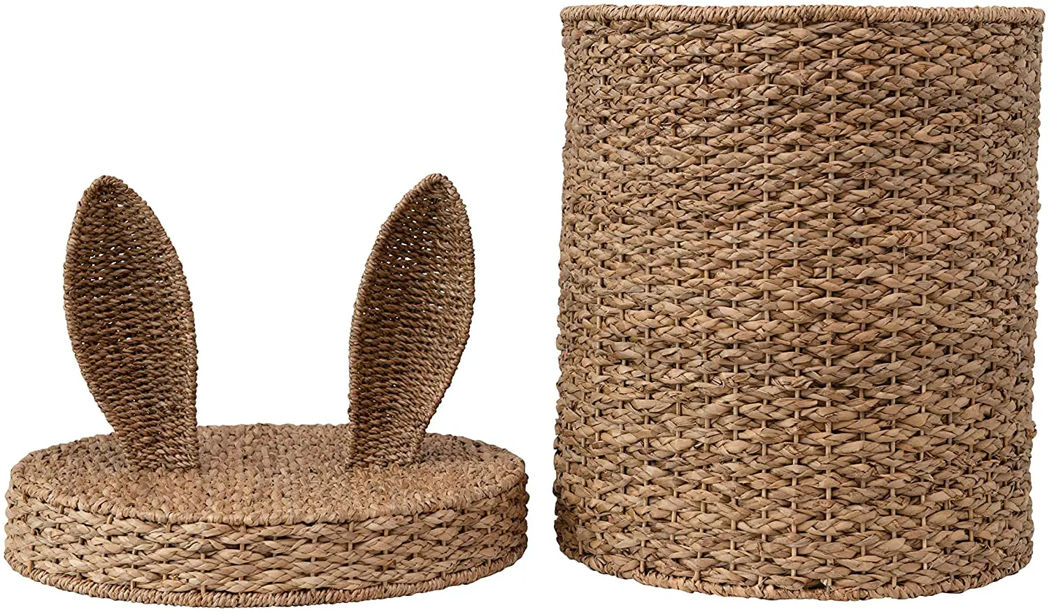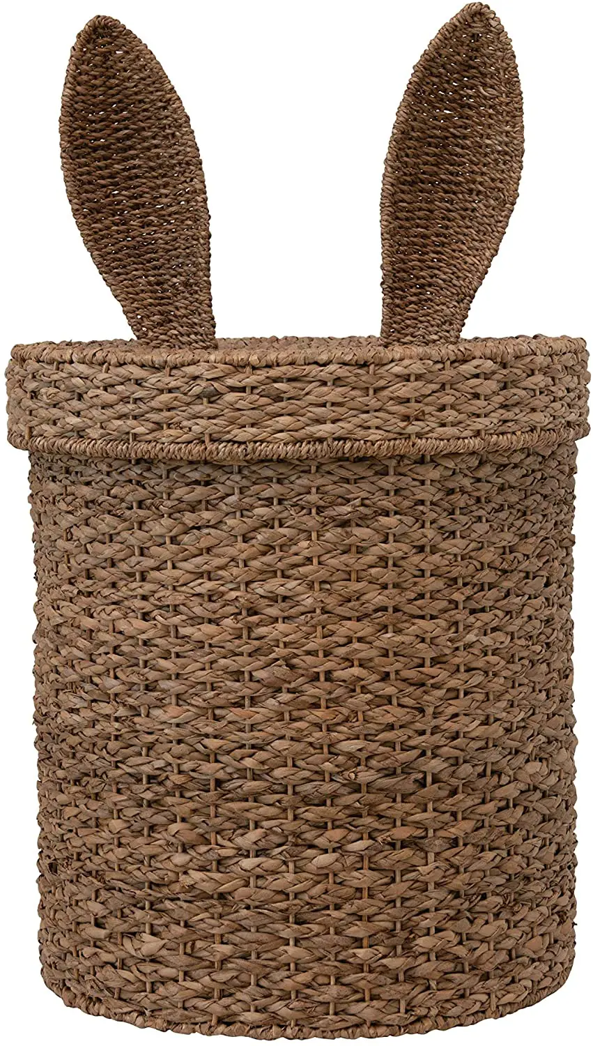Hand-Woven Seagrass & Rattan Basket with Bunny Ears Lid
