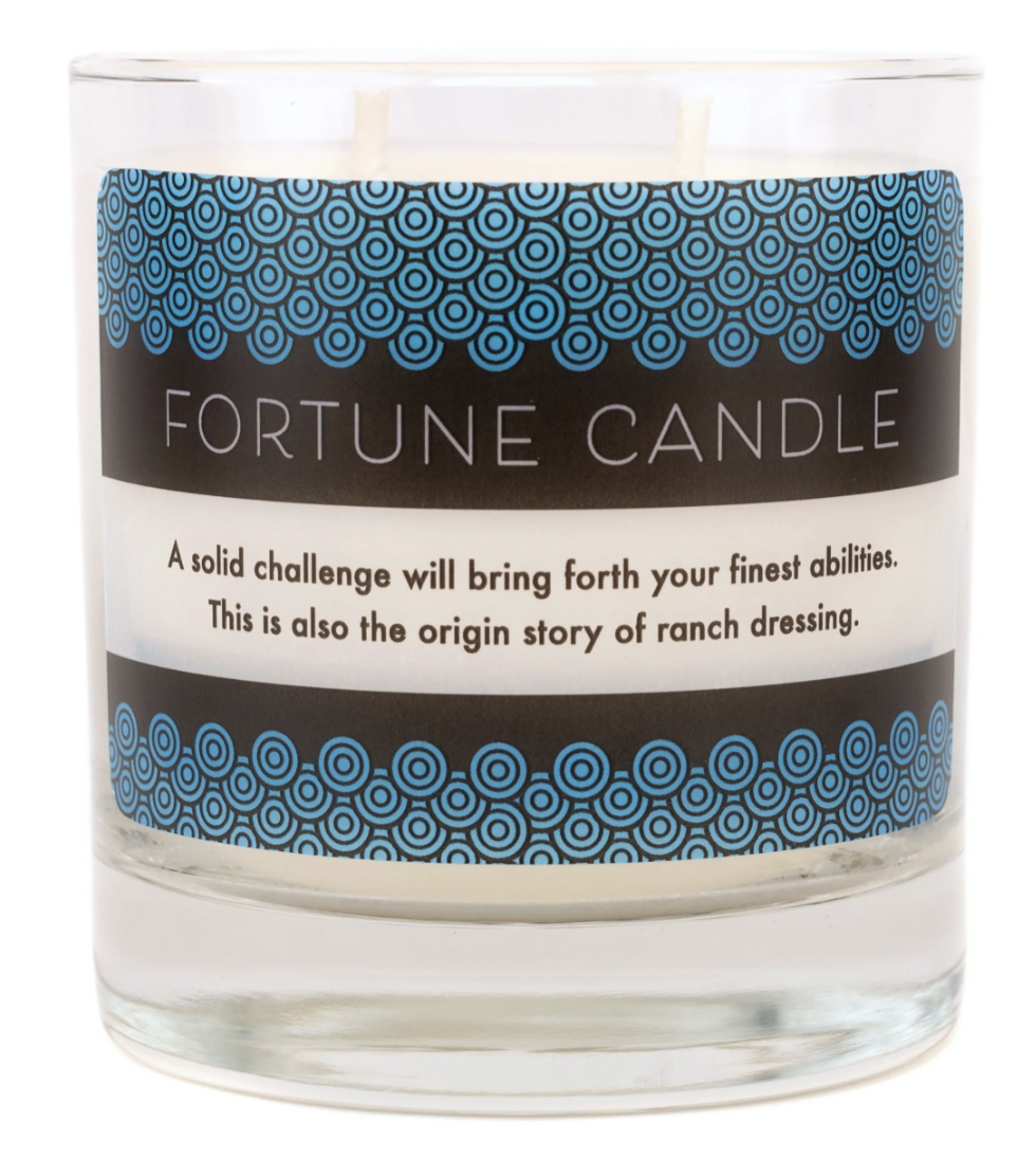 We love Chinese food and all, but honestly the best part is the fortune cookie. And since Veggie Lo Mein is now off-limits–Atkins, man–we had the boys in the lab cook these babies up instead. Through the ancient science of heat and light, your fortune will appear as the candle burns. Confucius said, “Better to light one small candle than curse the darkness.” Smart guy.