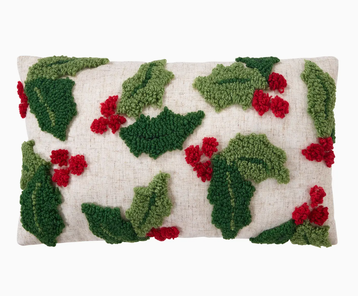 Holly W/Berries Tufted Pillow