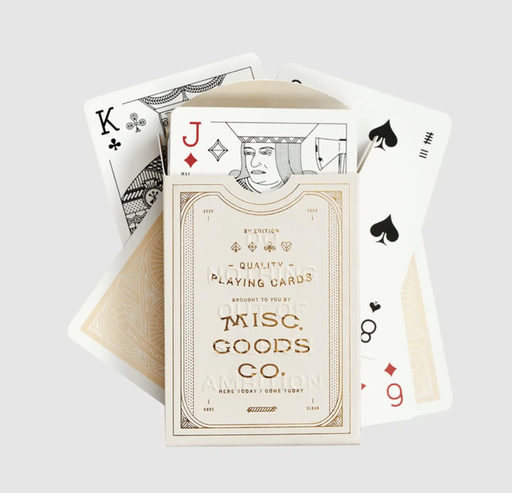 PLAYING CARDS SINCE 2012: Introducing the Misc. Goods Co. Premium Playing Cards crafted by owner and designer Tyler Deeb. Launched through a Kickstarter campaign in 2012 these cards redefine traditional gaming with a fresh artistic approach. The deck boasts a stunning array of all-new illustrations created by Tyler Deeb himself.