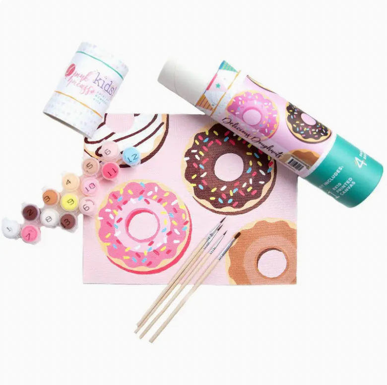 Help the little one in your life strengthen their fine motor control, hand-eye coordination, visual perception, spacial attention, and their creativity with fun, kid-friendly artwork turned into a paint by numbers kit! Each Pink Picasso Kids kit includes everything your child needs to paint a fun masterpiece you’ll both be proud of for years to come. ALL INCLUSIVE: Each kit contains one 8×10’ ready-to-paint professional-weight canvas, pre-mixed acrylic paints in handy little pots, and a set of four paint brushes. CREATIVITY CREATOR: Painting increases your child’s creativity and lengthens their concentration spans. SELF CARE FOR KIDS: Children get stressed, too! A healthy way to help the little one in your life de-stress CONFIDENCE BOOST: Easily help the little one in your life build self-confidence. They’ll take pride in their finished masterpiece! * MINIMIZES SCREEN TIME: Pink Picasso Kids kits are a fun and creative alternative to screens and devices