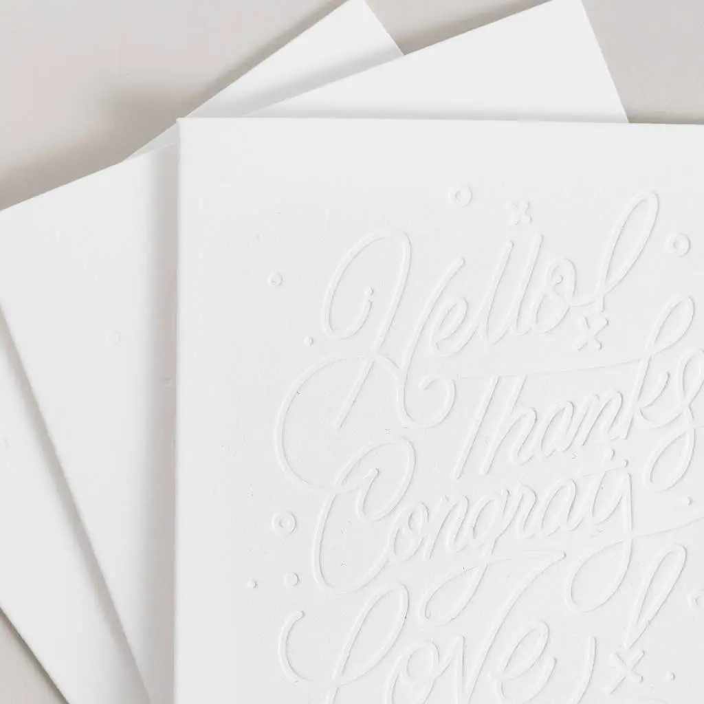 What if a greeting card could be beautiful, personalized, and perfect for every occasion? Say hello to these Color-In Greeting Cards. Each folded card includes 5 hand-lettered de-bossed words on the front to express exactly how you feel about someone, with a blank interior for your message.