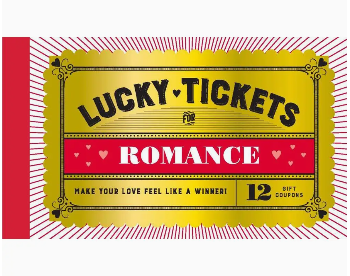 Longer-lasting and more meaningful than flowers or chocolates, this booklet is just the ticket to kindle real romance. This love-themed collection of 12 shimmering lucky tickets grants their recipient tokens and treats they can cash in anytime, making it a perfect way to express affection on Valentine's Day, anniversaries, or anytime a little love is in order. GREAT FOR THE PERSON WHO HAS EVERYTHING: Can't think of the perfect present for your partner? This ticket booklet is a unique and fun gift, and also a fabulous way to give experiences—like a lazy morning in bed, or a date night—that theyÆre sure to love. AFFORDABLE WITH BIG IMPACT: It's gifting gold!