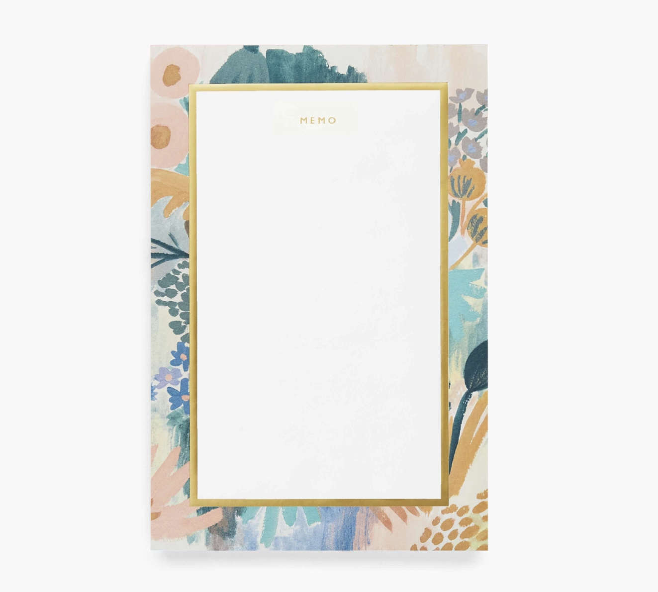 Bordered by Rifle's painterly Luisa florals, this oversized notepad makes even mundane memos look motivating. The pad features 65 tear-off sheets with gold foil on every page.