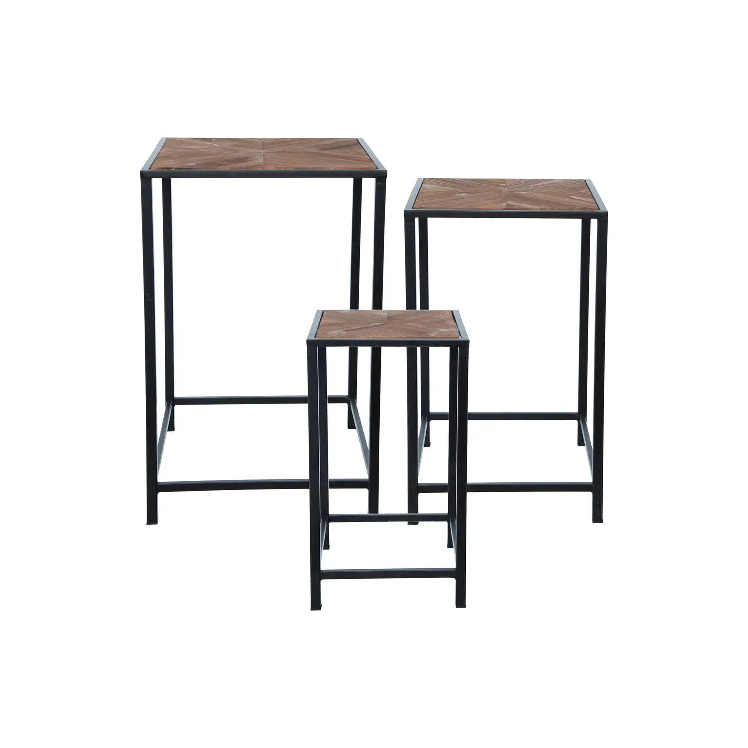Make your space functional yet fashionable with the set of three Mason Accent Tables from Foreside Home & Garden. These lovely tables feature beautiful natural wooden tabletops and sturdy metal frames, ensuring their ability to last throughout the ages. Their varying sizes allow them to be used nearly anywhere in your house. Decorating has never been easier than with this set of nesting tables.