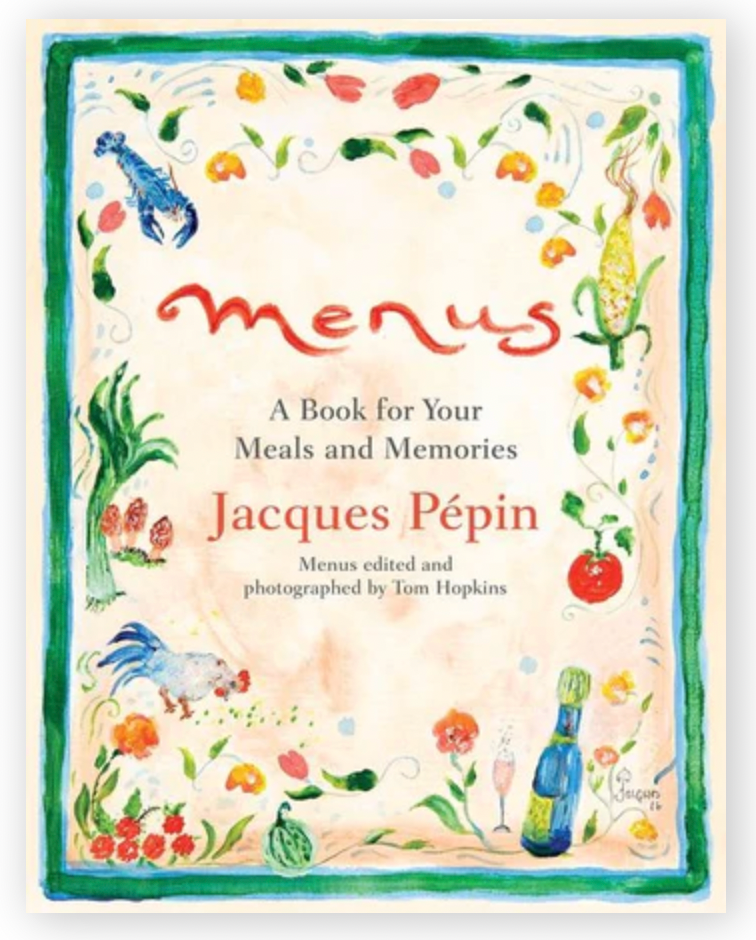 An illustrated journal to record celebrations, with paintings by the legendary chef and artist Jacques Pépin For the last fifty years, Jacques Pépin has created lushly hand-illustrated journals to keep track what he cooked for friends, birthdays, anniversaries, weddings, and holidays. This book collects Pépin’s favorite paintings so you can commemorate your own dinners: the dishes you serve, the wines that accompany them, and even the music you play. Choose from the more than 75 charmingly designed borders and use it to frame your menu. In the space on the opposite page, your guests can sign their names and write little notes. With an introduction by Pépin, this “dinner diary” is both a practical reminder of what dishes were served to which guests and an invaluable archive of memories.