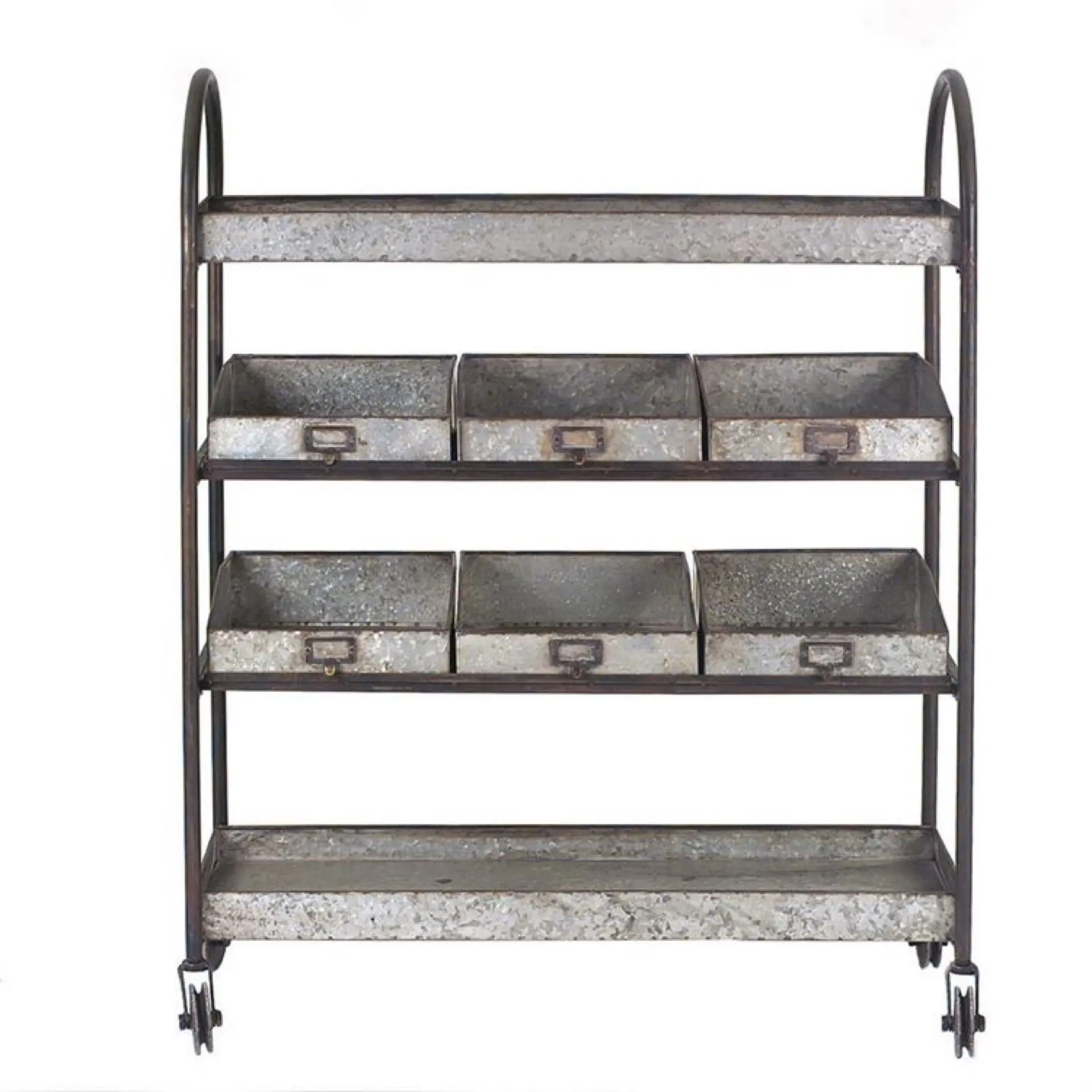 Metal 4-Tier Cart w/ 6 Bins on Casters