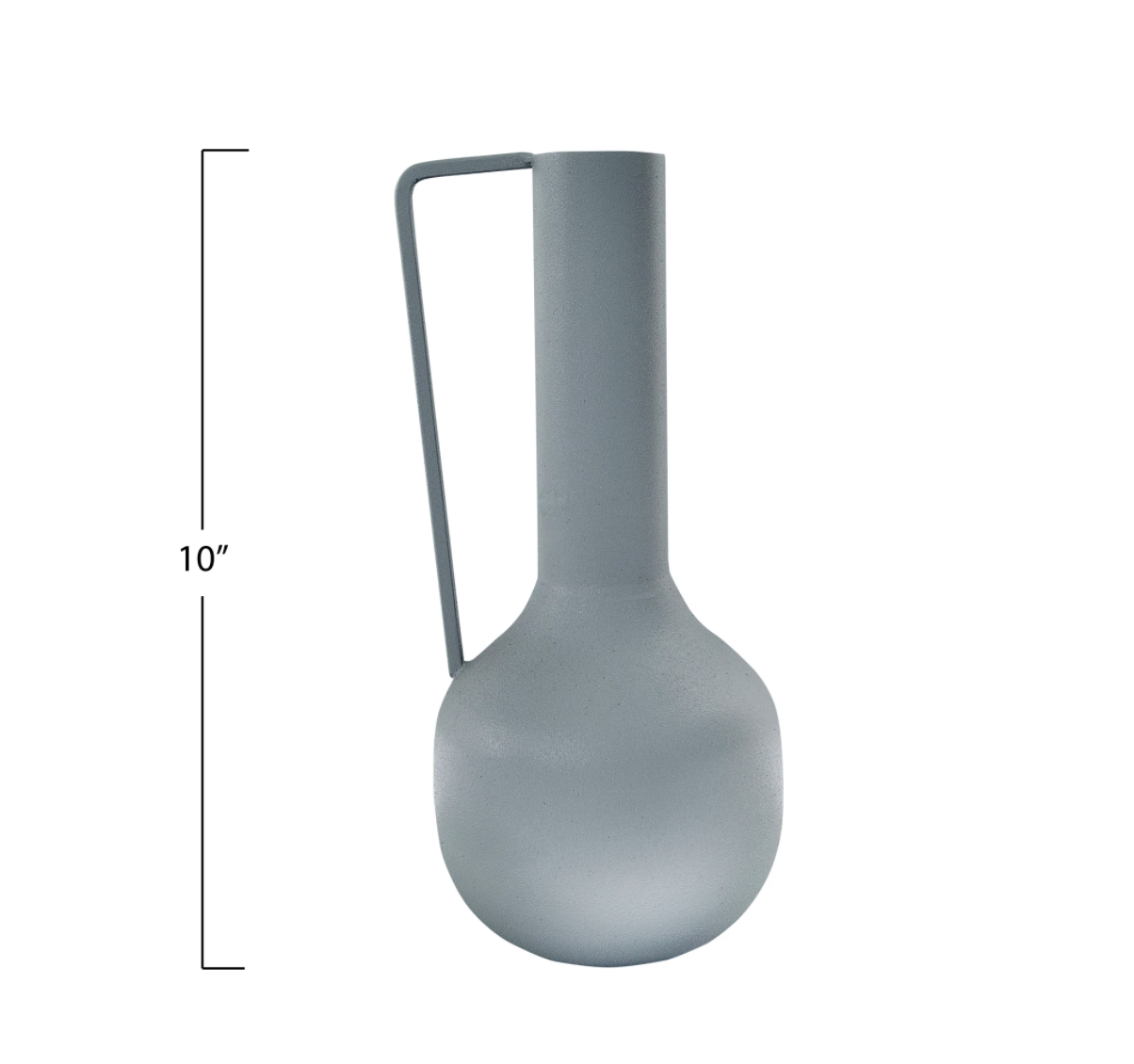 The warm charcoal finish on this metal vase will add a soothing feel to the room decor. With a subtle textured finish, the slender design will look amazing on a shelf or tabletop. Pair with a charcoal throw over a nearby chair or a piece of wall art filled with warm shades of charcoal and grey.