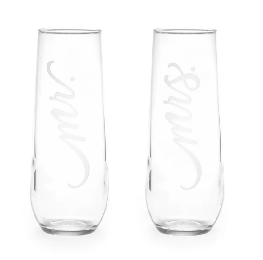 Mr & Mrs Stemless Champagne Flutes