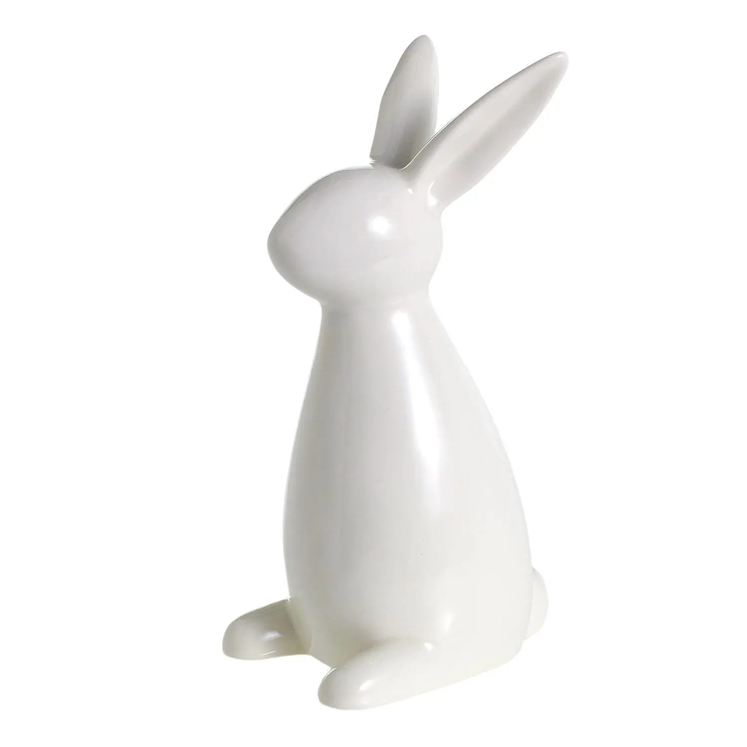 Ceramic bunny statuette in glossy white glaze, modern and playful and available in two sizes.