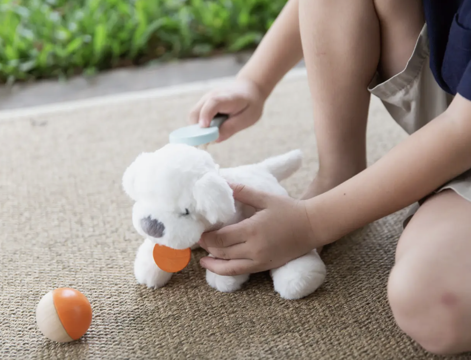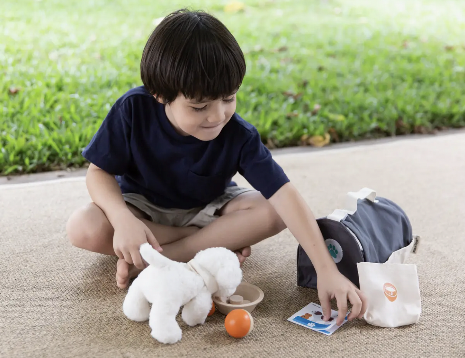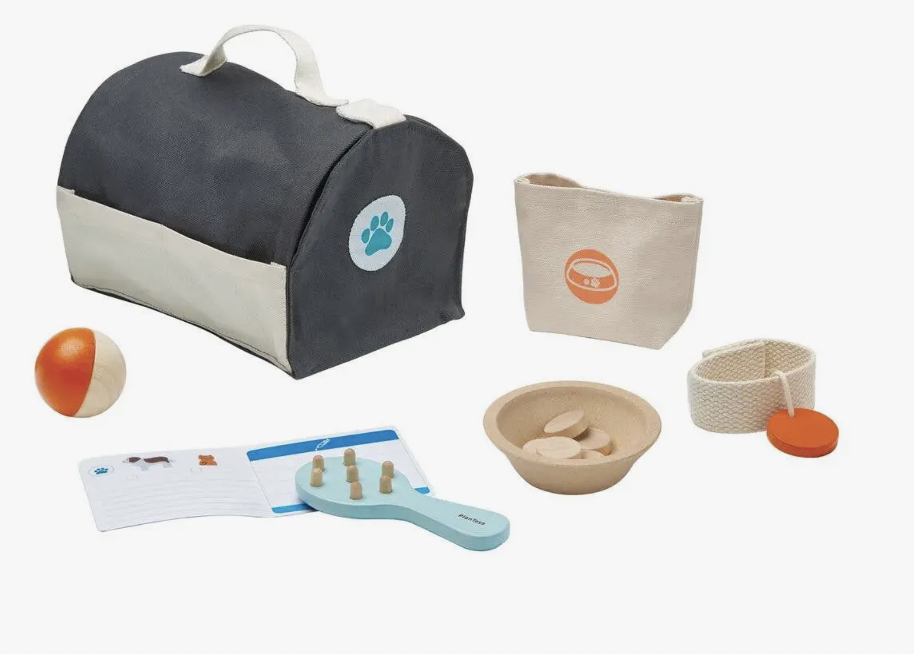 Prepare your kids to have responsibility before taking care of real life pets with this lovely toy! This set includes pet food, a bowl, a brush, a pet toy (ball), a collar, a pet passport, and a pet carry case. Children can play with their favorite plush toy friends. (Doll not included in set)