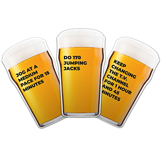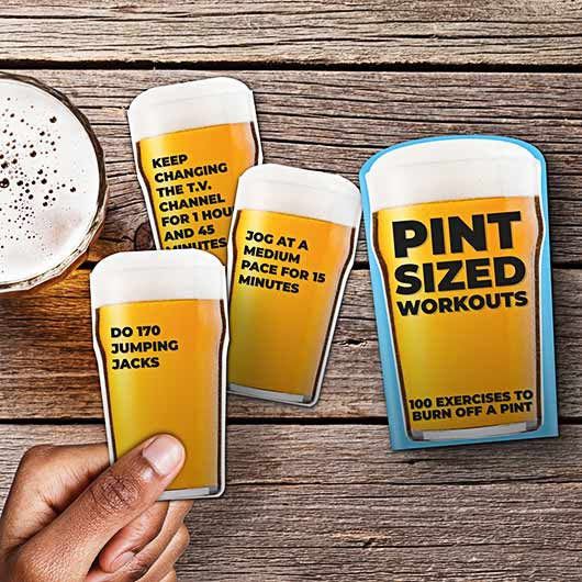 Do you know someone who let their beer belly get out of control? This pack has 100 workout cards to burn off the calories in one pint of beer. No more excuses! Dimensions: 15x9x3.5cm.